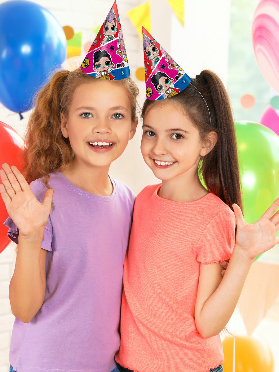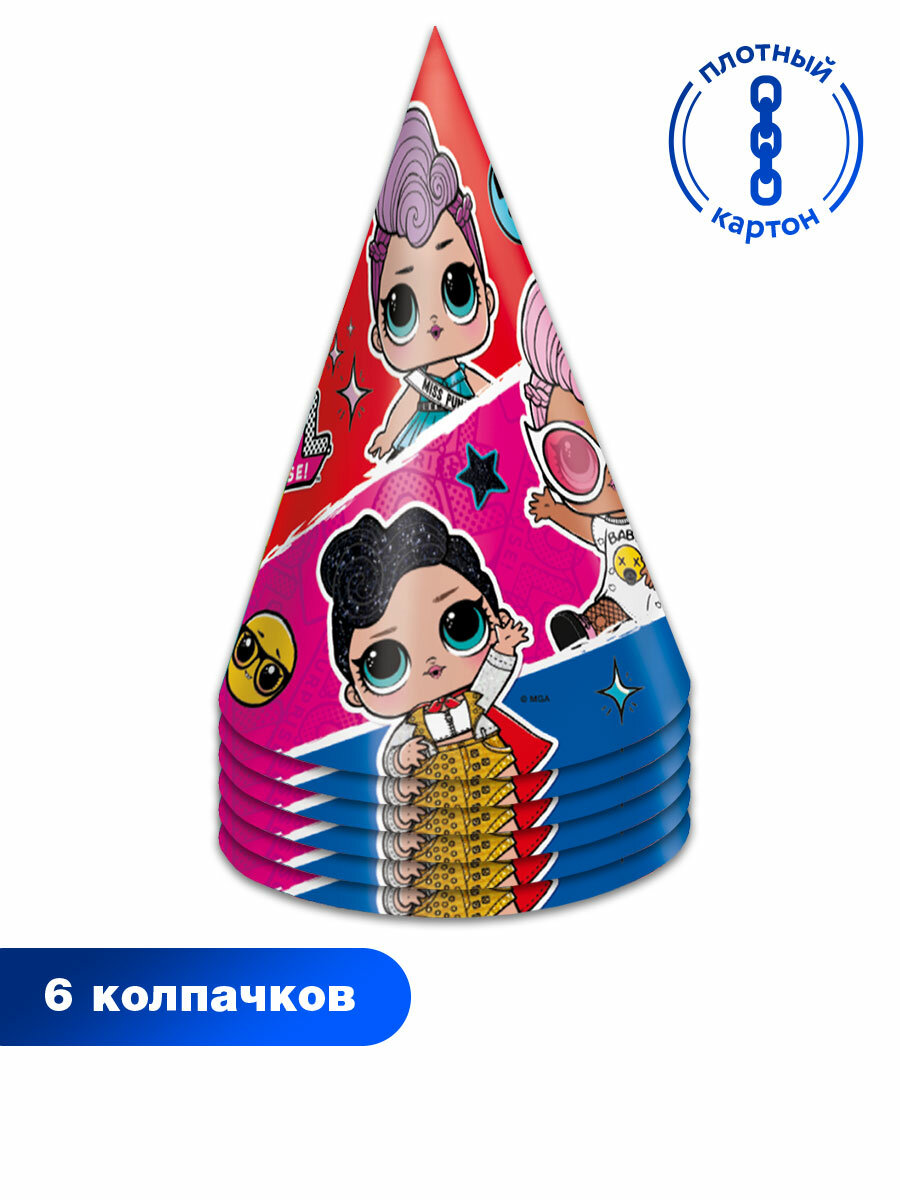 Праздничные колпаки LOL Surprise розовые с паттерном 6шт