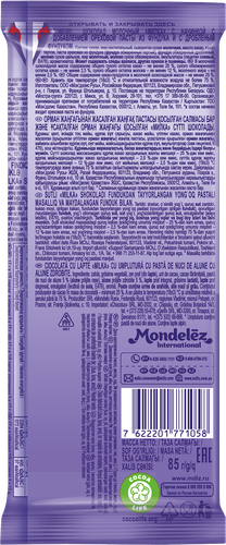 Шоколад Milka Молочный с начинкой ореховой пасты из фундука и с дробленым фундуком 85г
