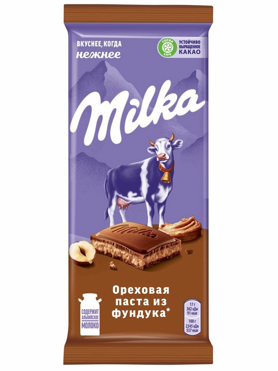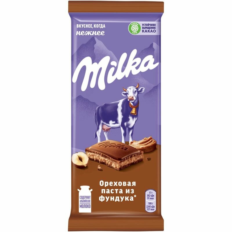 Milka Ореховая паста из фундука — это восхитительное сочетание нежного молочного шоколада Milka с тающей ореховой пастой из фундука и кусочками обжаренного фундука.Вкуснее, когда нежнее!