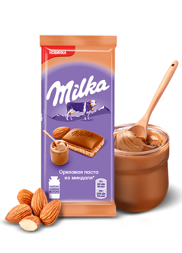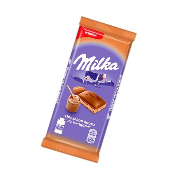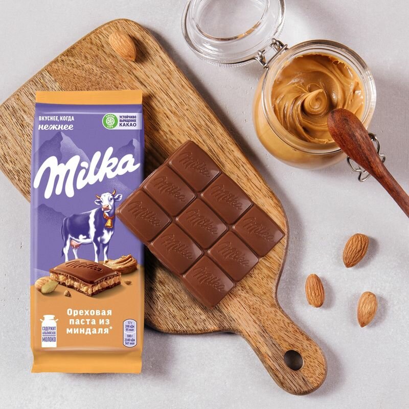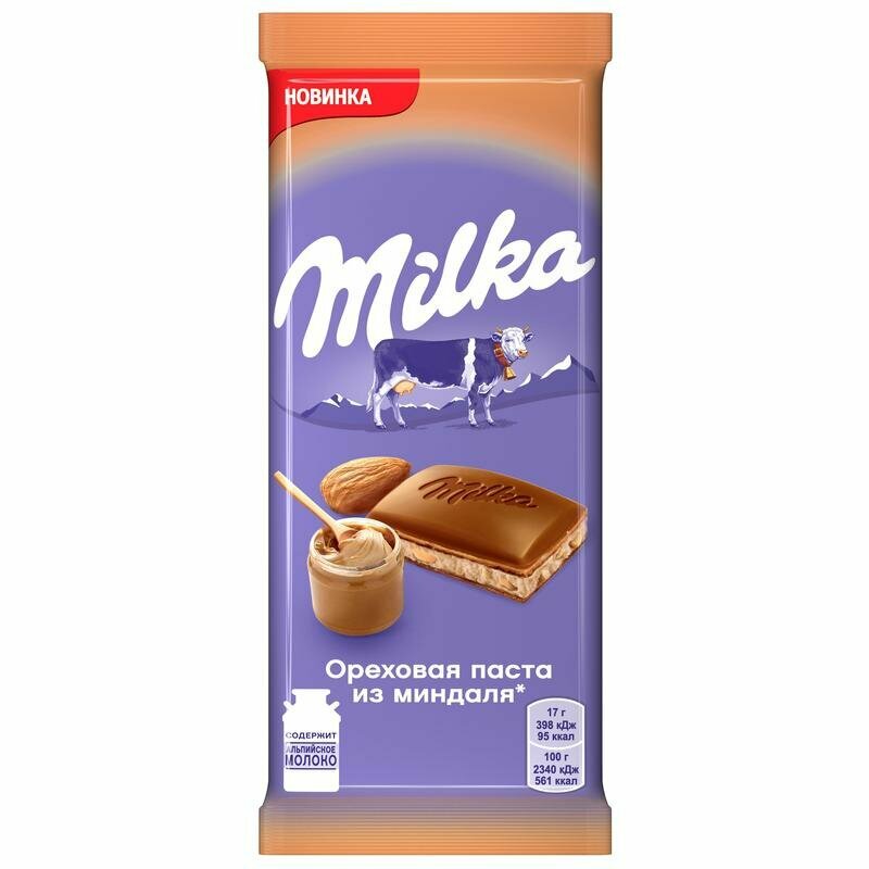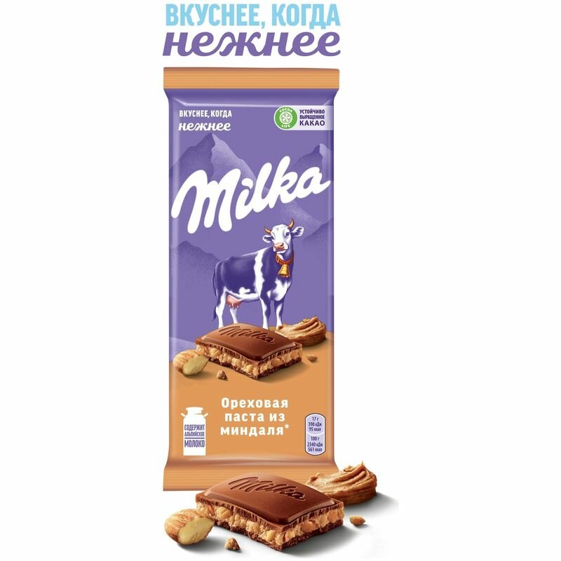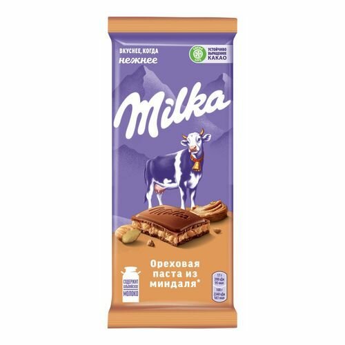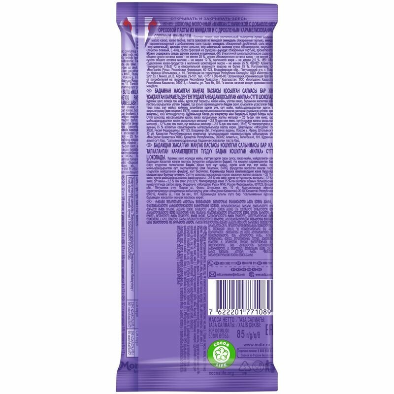 Шоколад Milka Молочный с пастой из миндаля и с дробленым карамелизованным соленым миндалем 85г