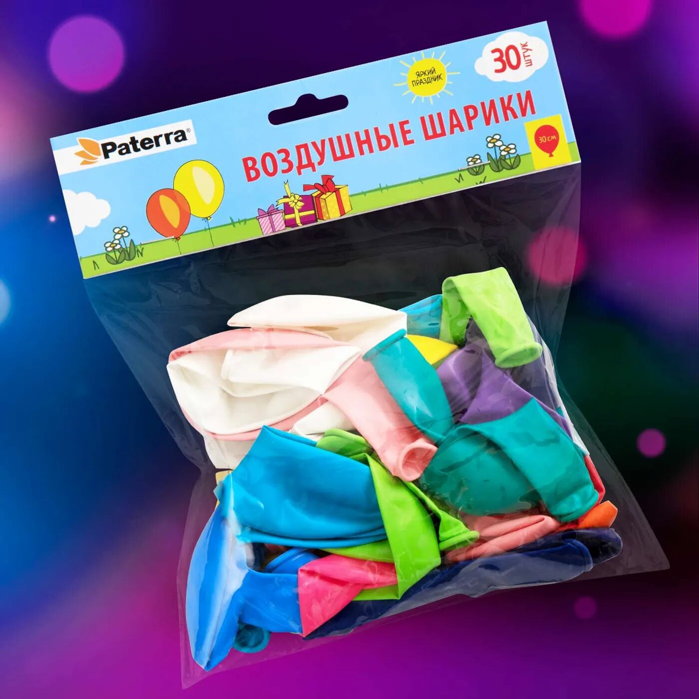 Товары для праздника PATERRA Воздуш. шарики 30 см, разноцв. без рисунка, 30шт. в упак./35имеет упаковку, которая может отличаться от фото, ввиду индивидуальных особенностей цветопередачи экрана вашего устройства, а также производитель мог изменить дизайн упаковки. В случае выявления несоответствия сообщите нам об этом.