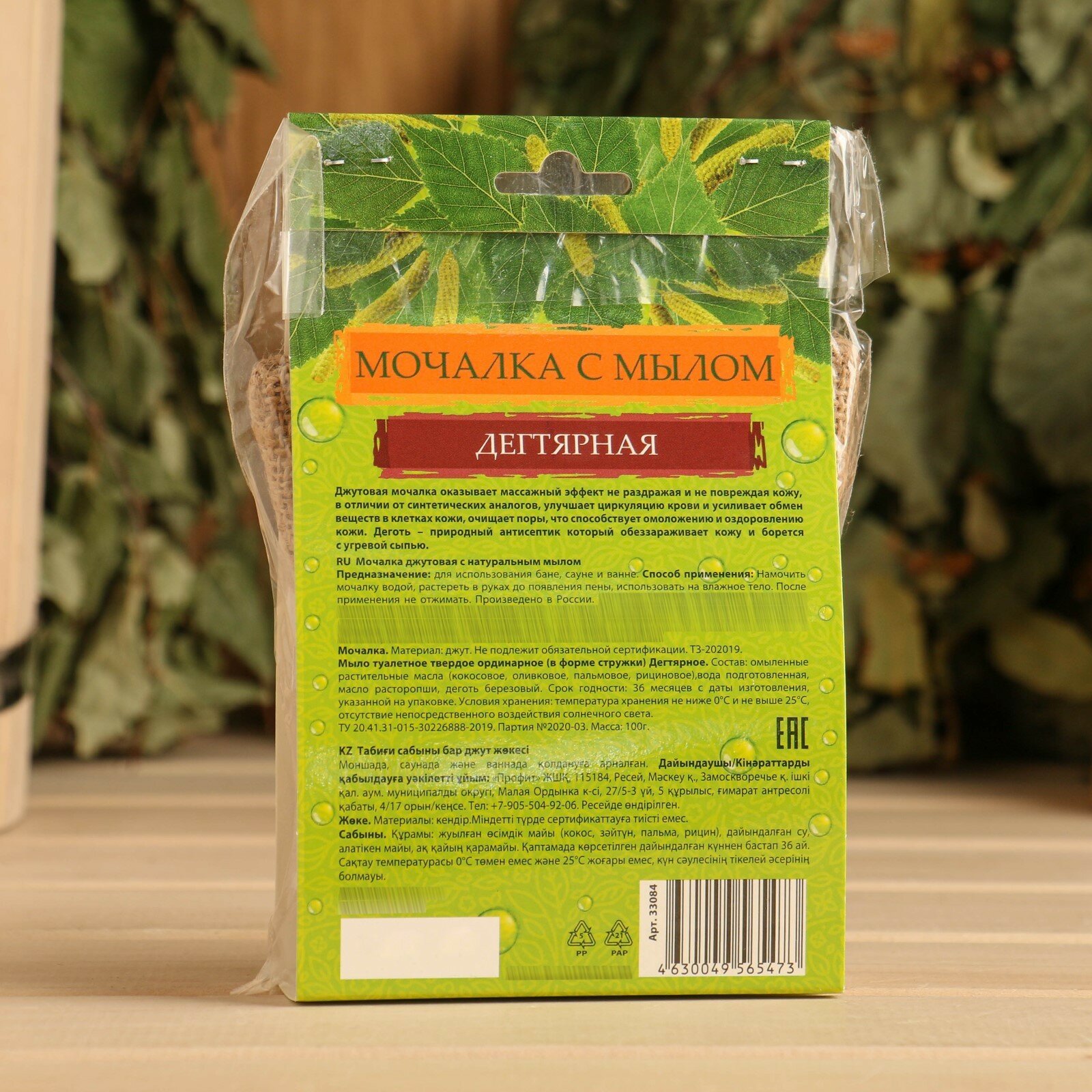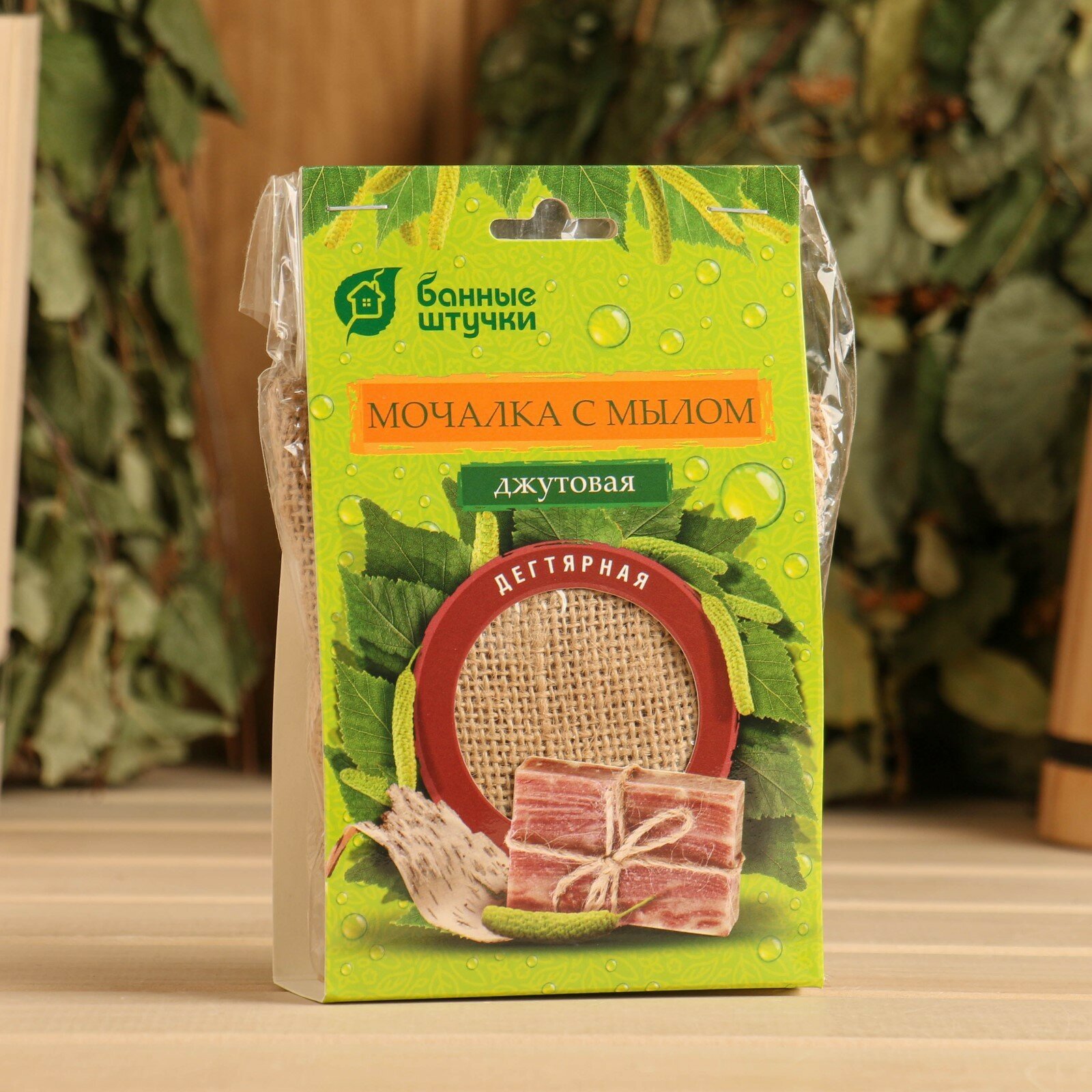 Джутовая дегтярная мочалка с натуральным мылом Банные штучки, обеспечивает качественное очищение тела.