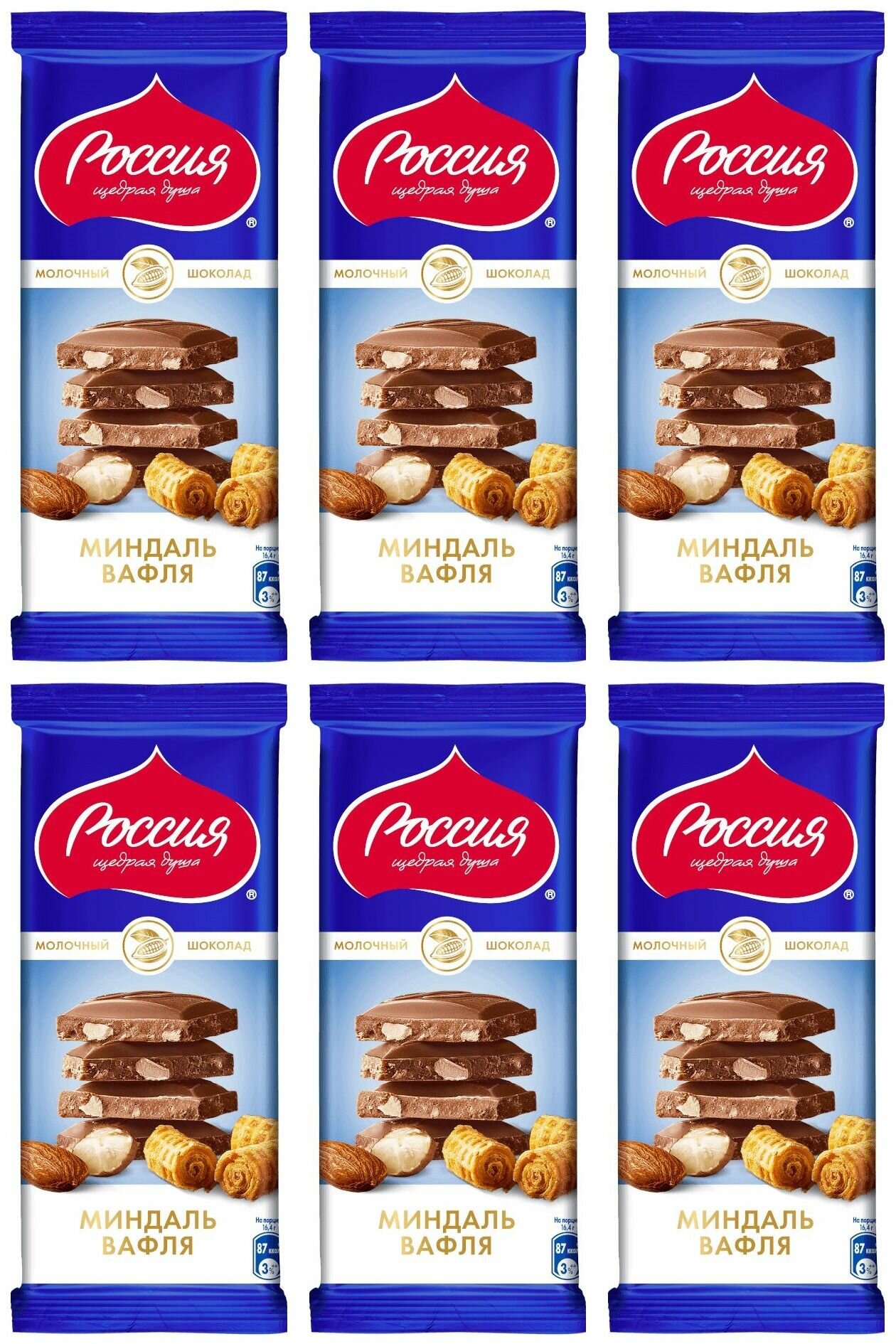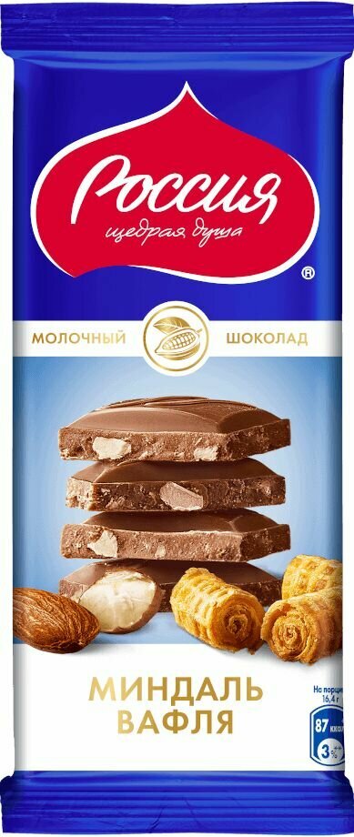 Шоколад Россия - щедрая душа молочный с миндалем и вафлей 82г