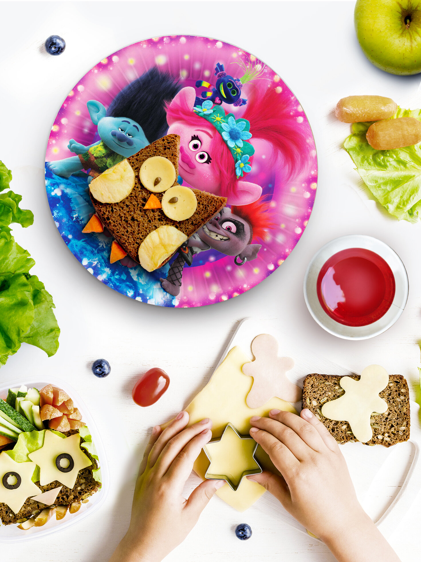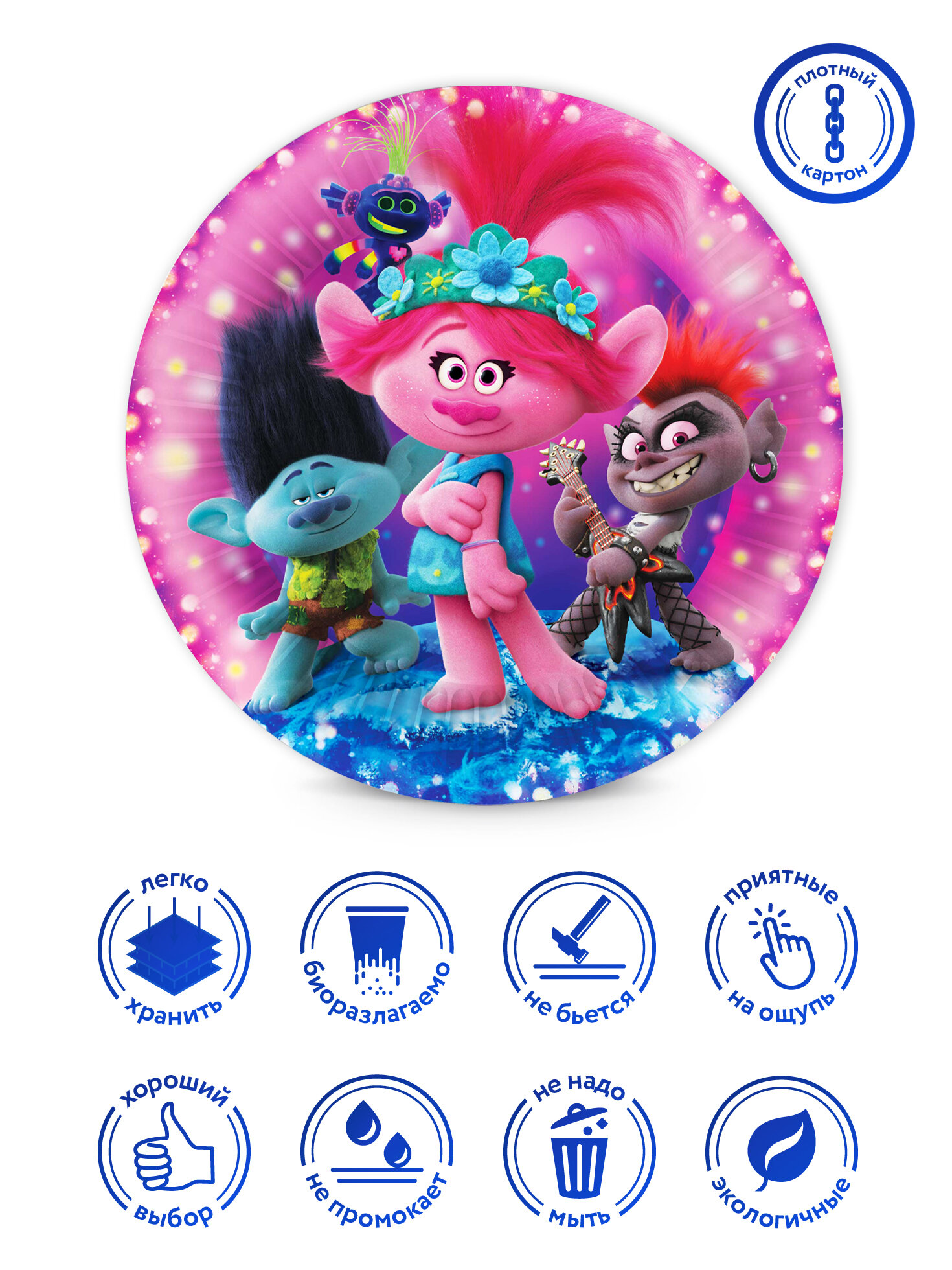 Набор одноразовых тарелок "Тролли" – это стильное и практичное решение для оформления дня рождения или другого детского тематического праздника. Красочные бумажные тарелочки с изображением любимых героев привлекут внимание гостей и подарят множество ярких эмоций. Набор состоит из 6 бумажных тарелочек диаметром 18 см. Одноразовые тарелочки изготовлены из плотного ламинированного картона высокого качества, упакованы в пакет с цветным картонным хедером. Бумажные одноразовые тарелочки прекрасно сочетаются с другими товарами для детского праздника из серии "Тролли".