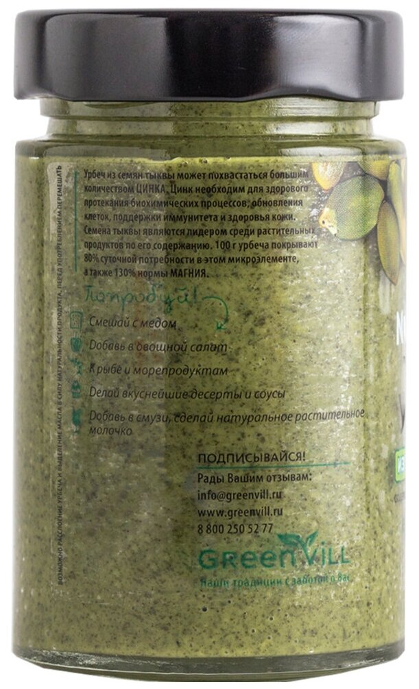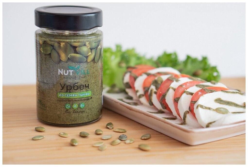 Урбеч из семян тыквы может похвастаться большим количеством цинка. Цинк необходим для здорового протекания биохимических процессов, обновления клеток, поддержки иммунитета и здоровья кожи. Семена тыквы являются лидером среди растительных продуктов по его содержанию. 100 г урбеча покрывают 80% суточной потребности в этом микроэлементе, а также 130% нормы магния.