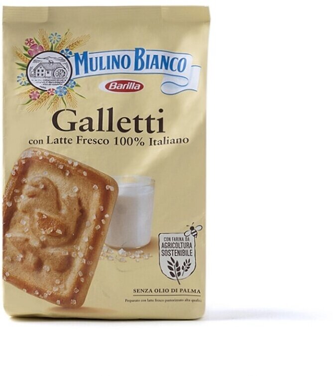 Описание товара:ПЕЧЕНЬЕ MULINO BIANCO идеально для завтрака, полдника, чаепития с друзьями и близкимиСостав товара:Мука пшеничная, масло подсолнечное рафинированное дезодорированное, сахар, сахарные гранулы 3.5%, разрыхлители (гидрокарбонат аммония, гидрокарбонат натрия), молоко сухое обезжиренное, молоко цельное пастеризованное, соль, крахмал пшеничный, белок молочный, ароматизатор.Способ приготовления:Хранить в сухом прохладном месте.Меры предосторожности:Хранить в сухом прохладном месте.