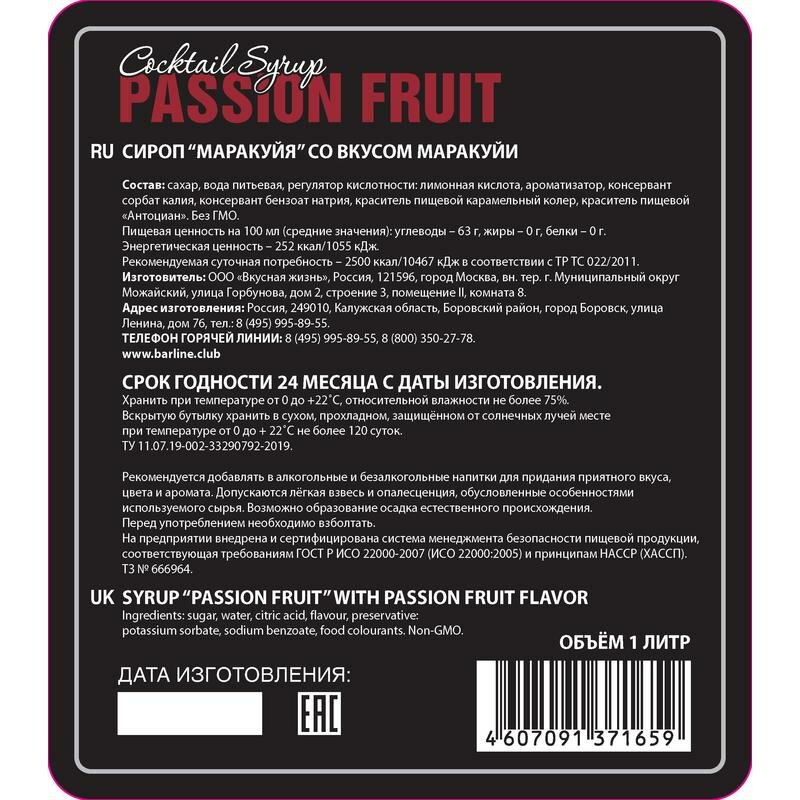 Cироп Barline Маракуйя 1л