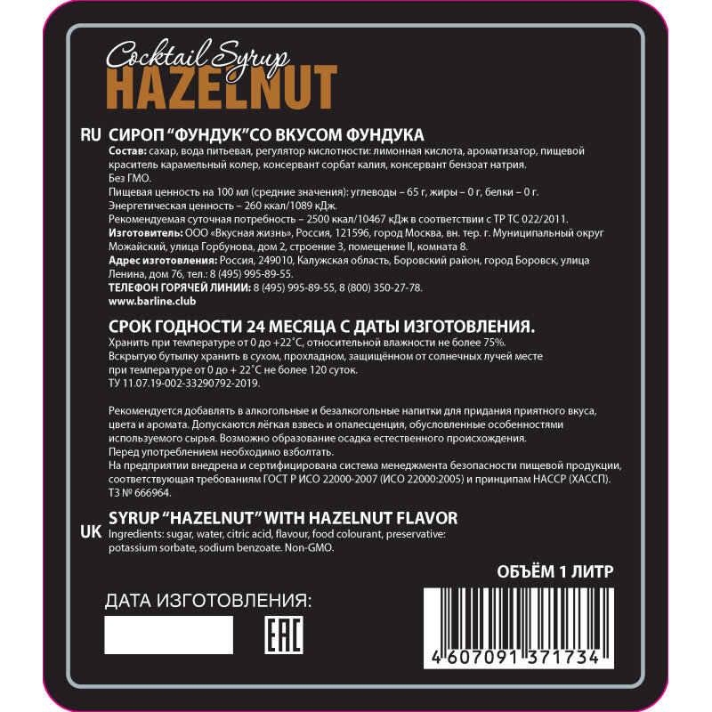 | Состав | Сахар, вода, регулятор кислотности: лимонная кислота, ароматизатор, консервант сорбат калия, консервант бензоат натрия. |
