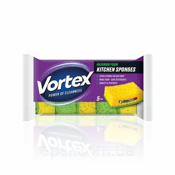 Кухонные губки Vortex предназначены для мытья посуды, раковин, кухонной мебели.