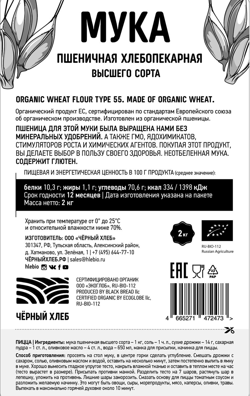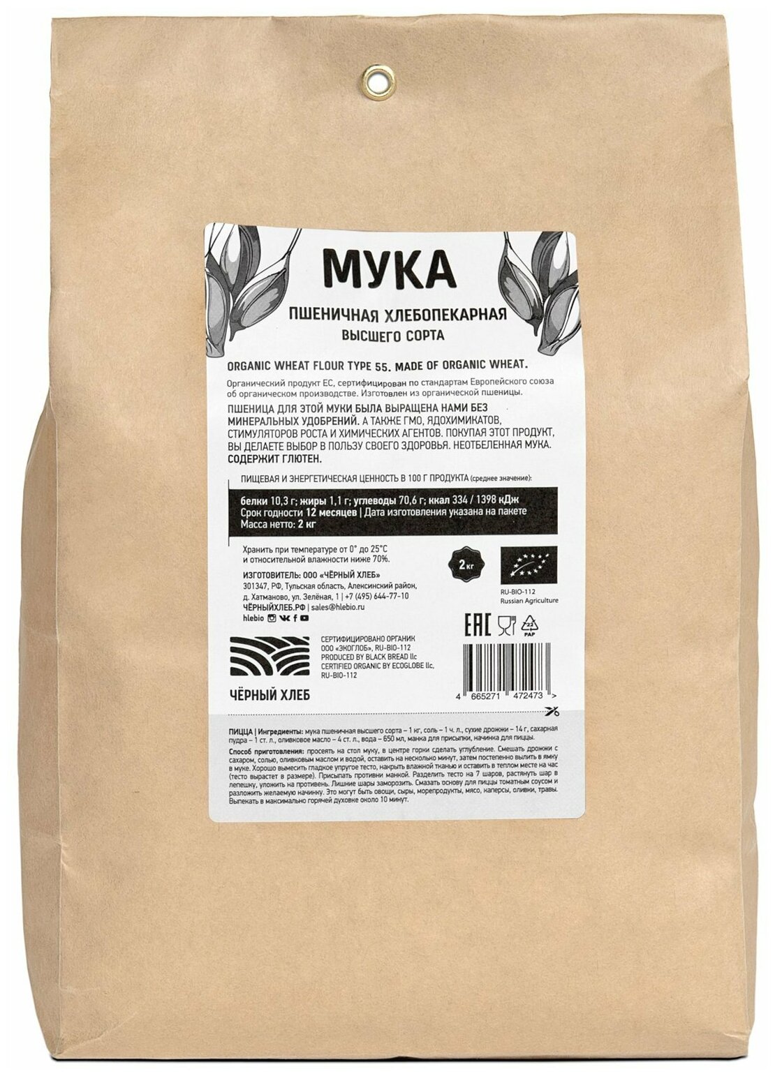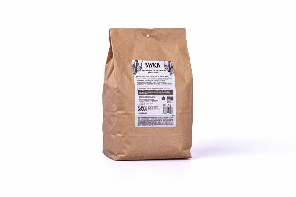 Мука Черный хлеб пшеничная органическая 2кг Мука пшеничная хлебопекарная высшего сорта, 2 кг.