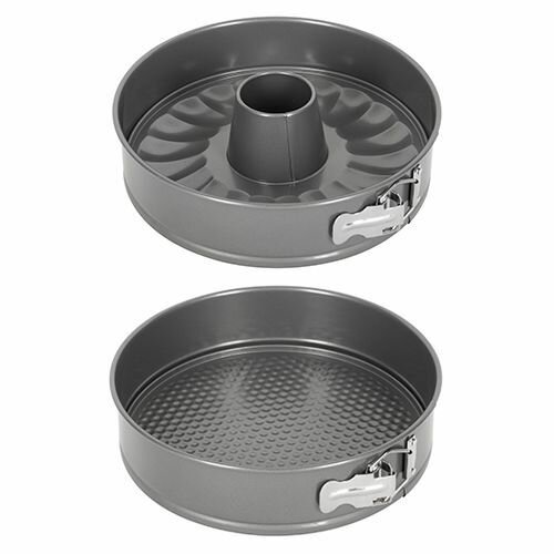 Набор форм для выпечки: разъемная форма, съемное дно для классического пирога, съемное дно для кекса Саварен. Съемное дно для удобства сервировки и нарезки блюда. Равномерный прогрев изделия. Антипригарное покрытие GOLDFLON. Внешнее и внутреннее антипригарное покрытие для легкого ухода. Можно мыть в посудомоечной машине. Для использования в духовке (max t° +230°C).
