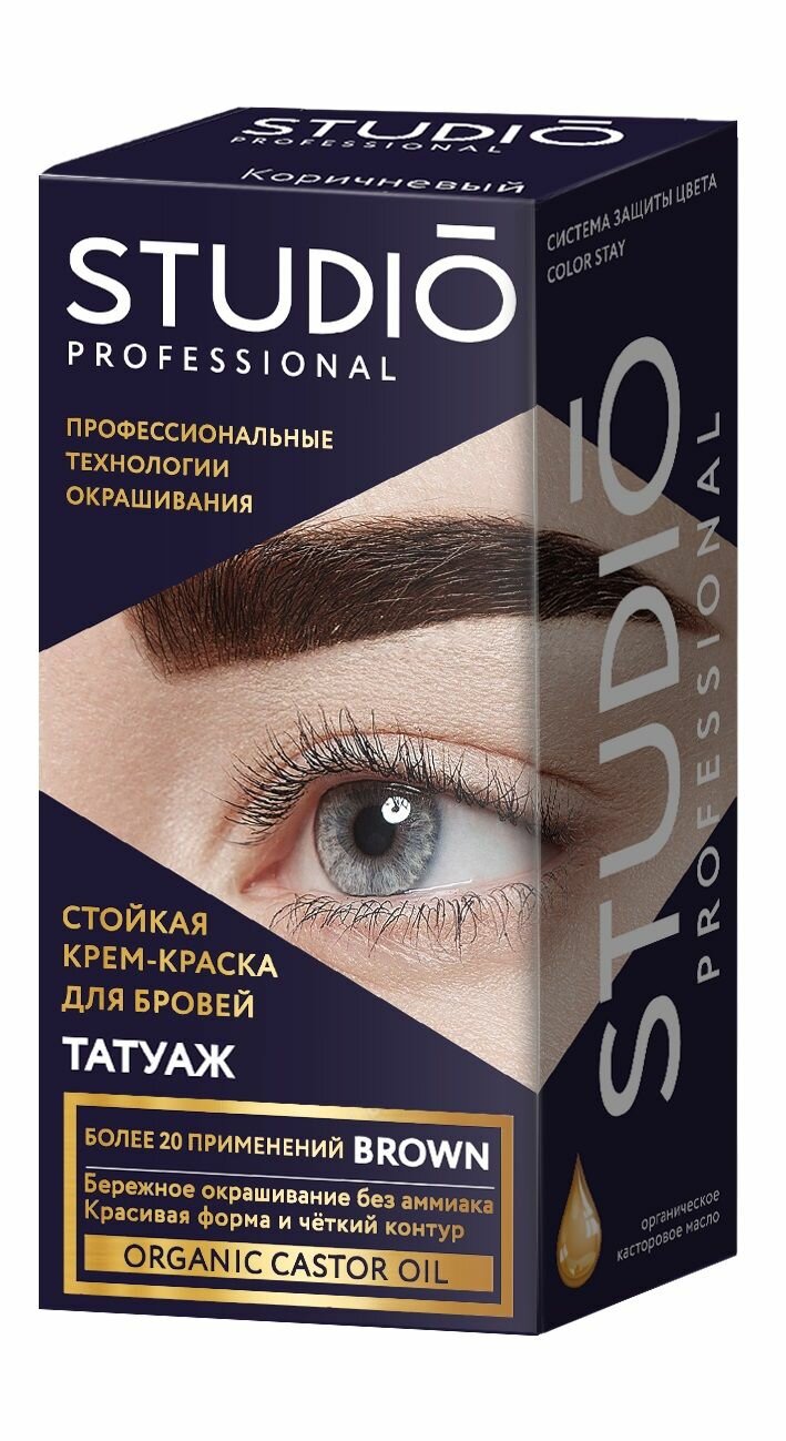 | Полное наименование | Комплект для окрашивания бровей STUDIO PROFESSIONAL графитовый с эффектом татуажа 20+30 мл |