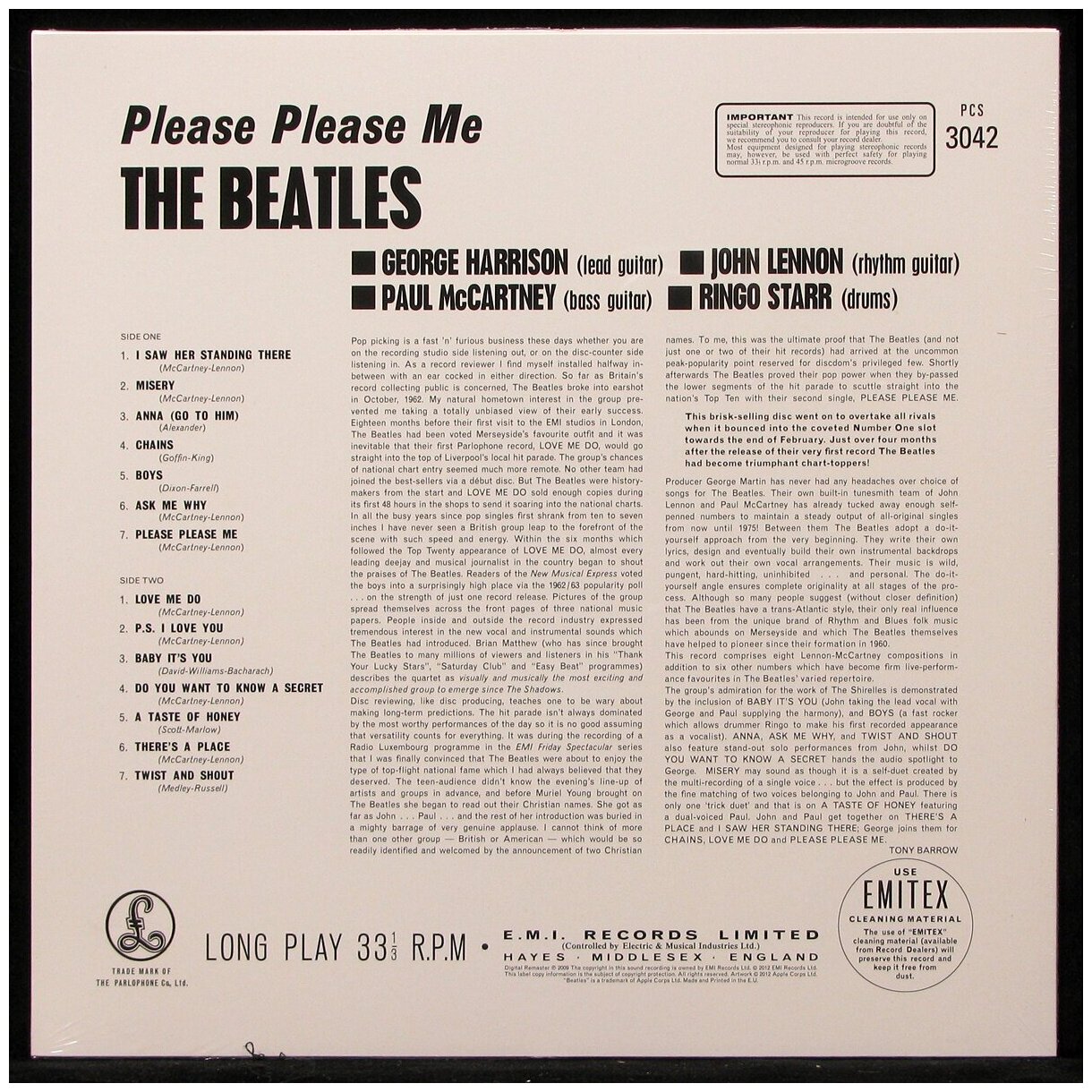 Beatles Please Please Me Виниловая пластинка EMI