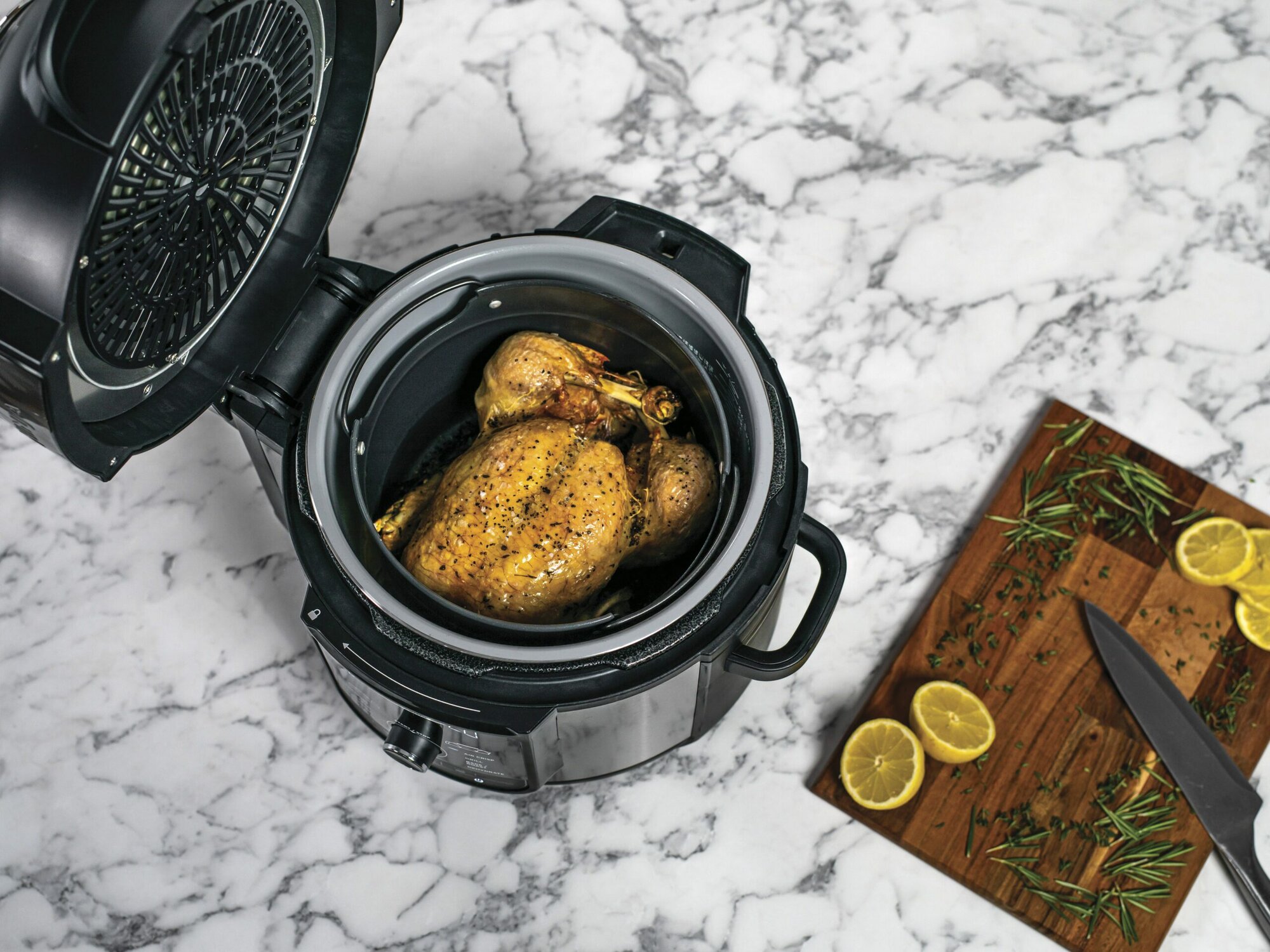 Технология TenderCrisp™: Уникальное комбинирование 2-х методов приготовления. Крышка для приготовления под давлением в режиме скороварки превращает даже самые твердые продукты в нежные, сочные и ароматные блюда. А крышка аэрогриля позволяет жарить с конвекцией, запекать, тушить или обжаривать до равномерно хрустящих или карамелизированных блюд, с золотисто-коричневой корочкой. Результат - блюда сочные внутри и хрустящие снаружи.