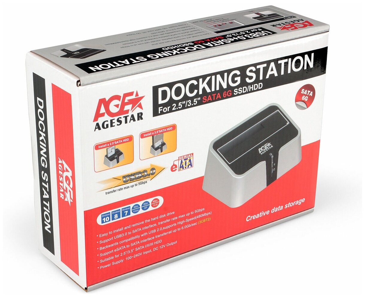 Док станция для HDD 2.5"/3.5" SATA AgeStar 3CBT2 USB3.0 eSATA серебристый 3CBT2-6G
