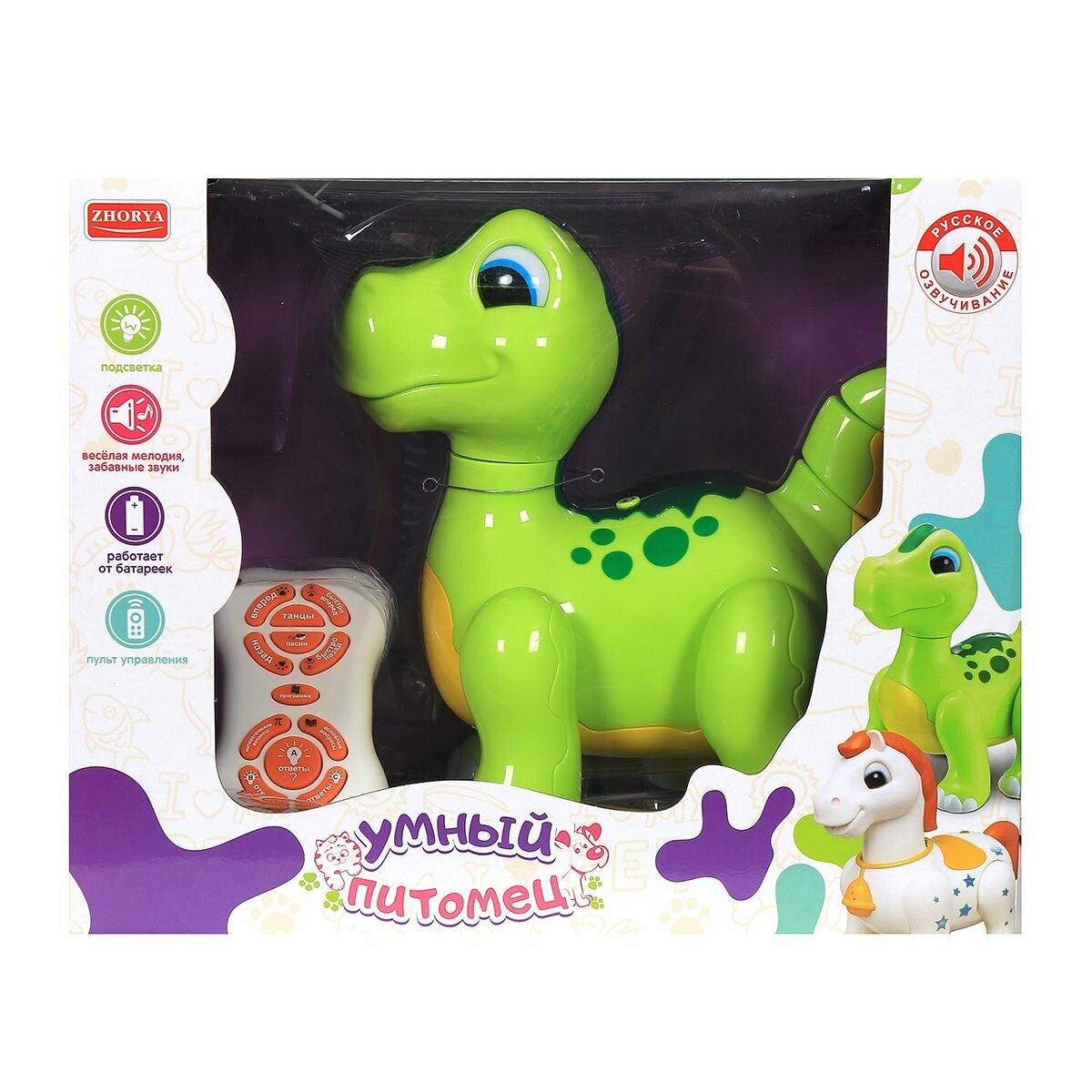 Робот радиоуправляемый интерактивный ZHORYA "Динозаврик" русское озвучивание световые эффекты пульт р/у батарейкий типа АА от 3 лет Динозаврик серия "Умный Я" арт.ZYA-A2743-2