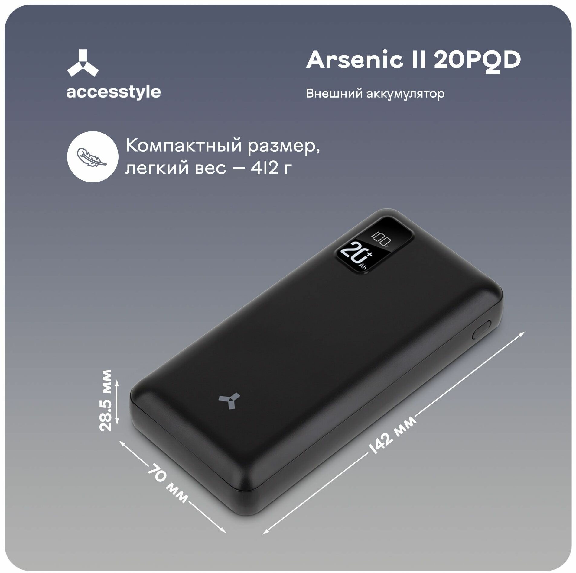 Аккумулятор внешний универсальный AccesStyle 20000мAч черный Arsenic II 20PQD (черный)
