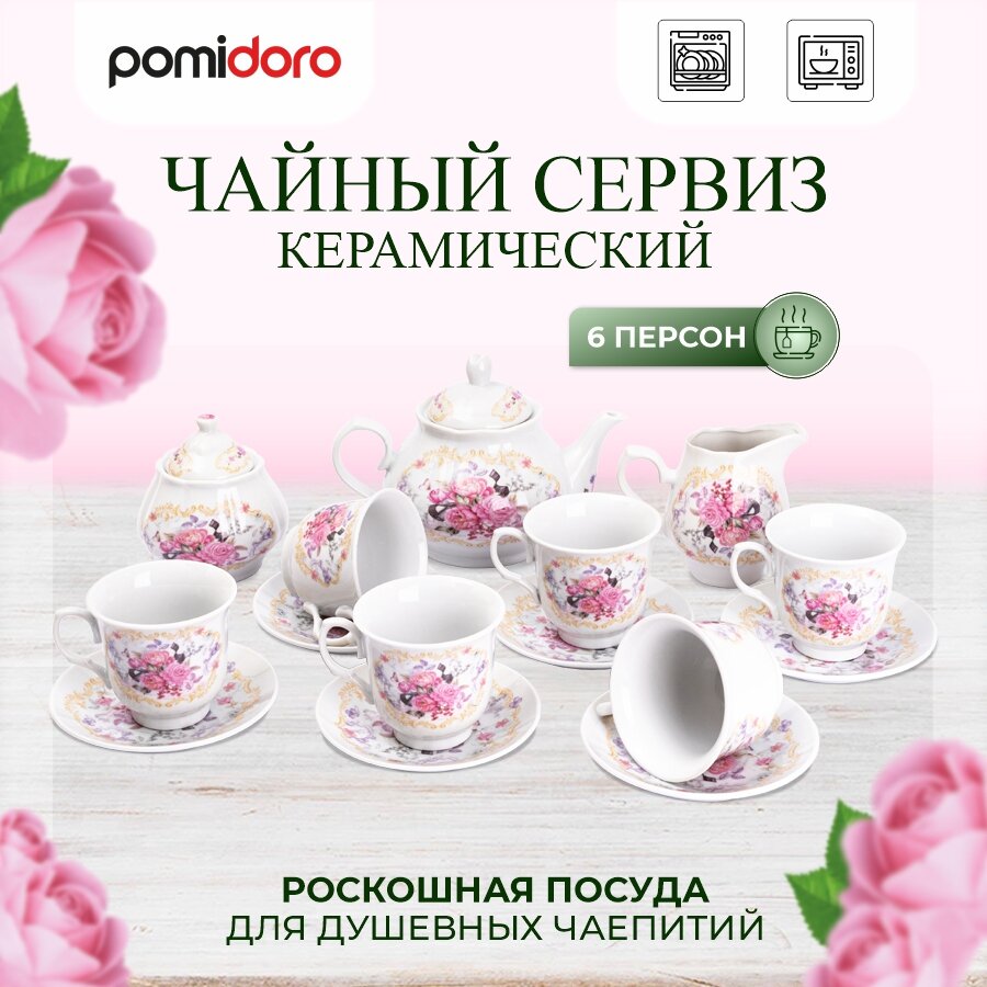 | Состав набора | блюдце - 6 шт.; чашка - 6 шт.; заварочный чайник - 1 шт.; молочник - 1 шт.; сахарница - 1 шт. |