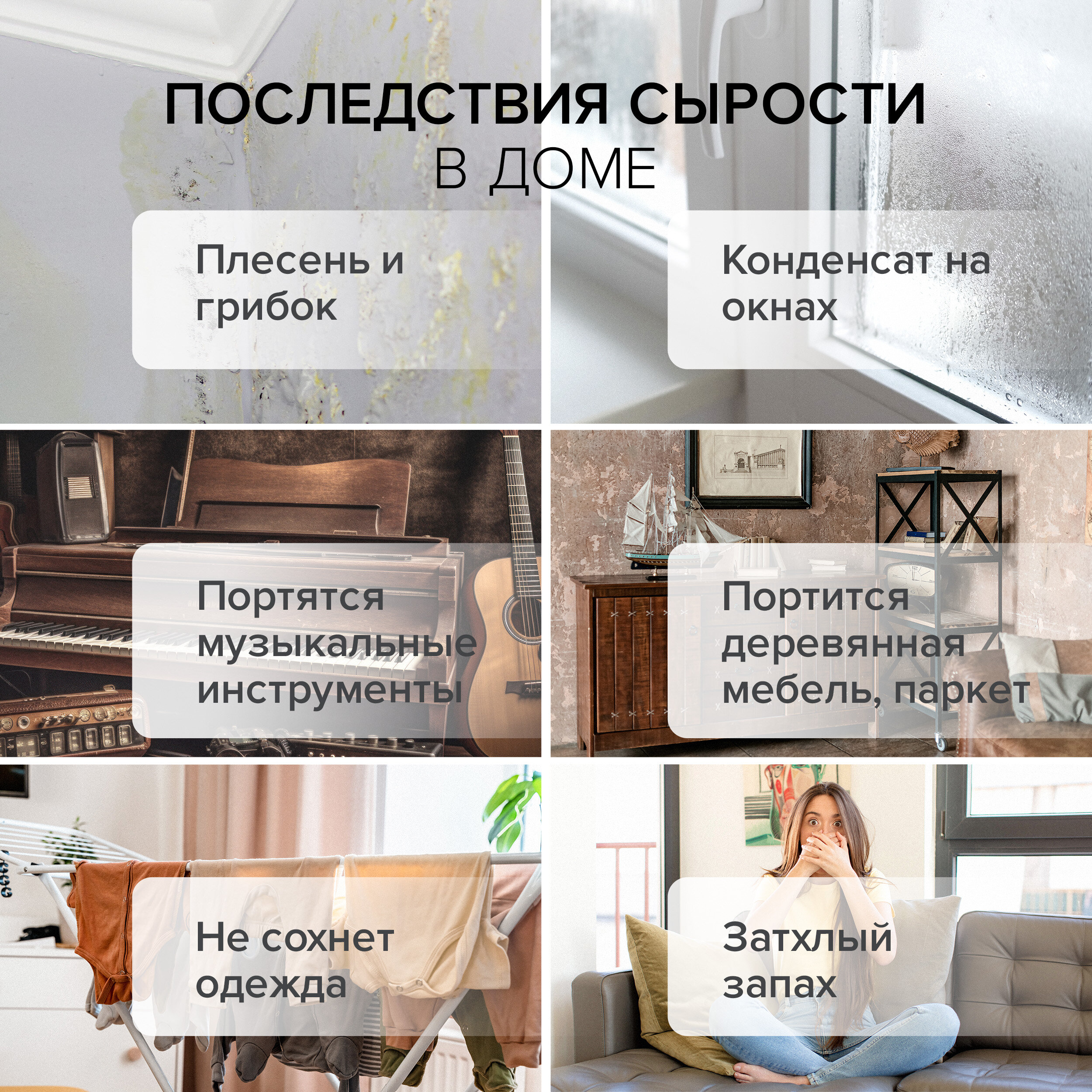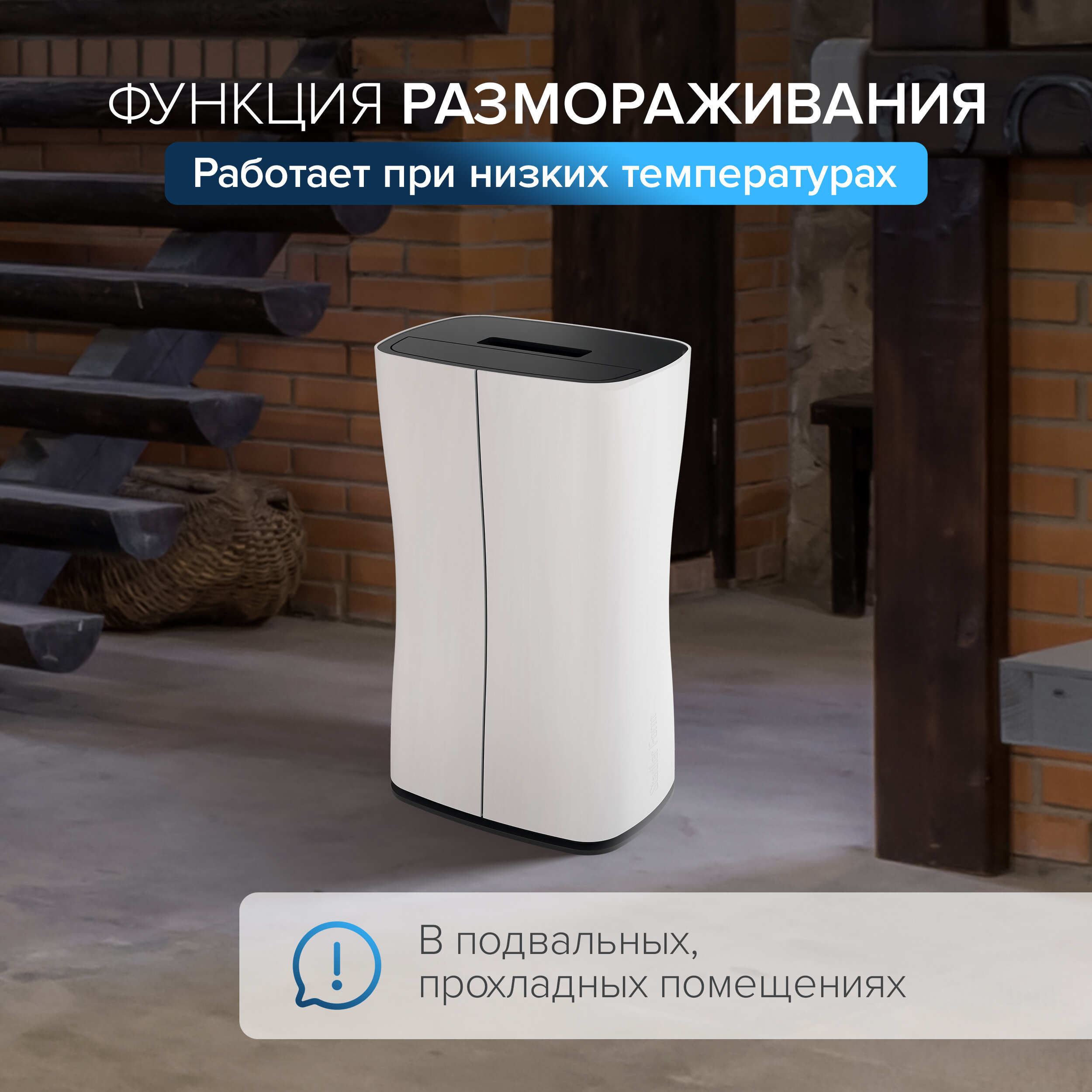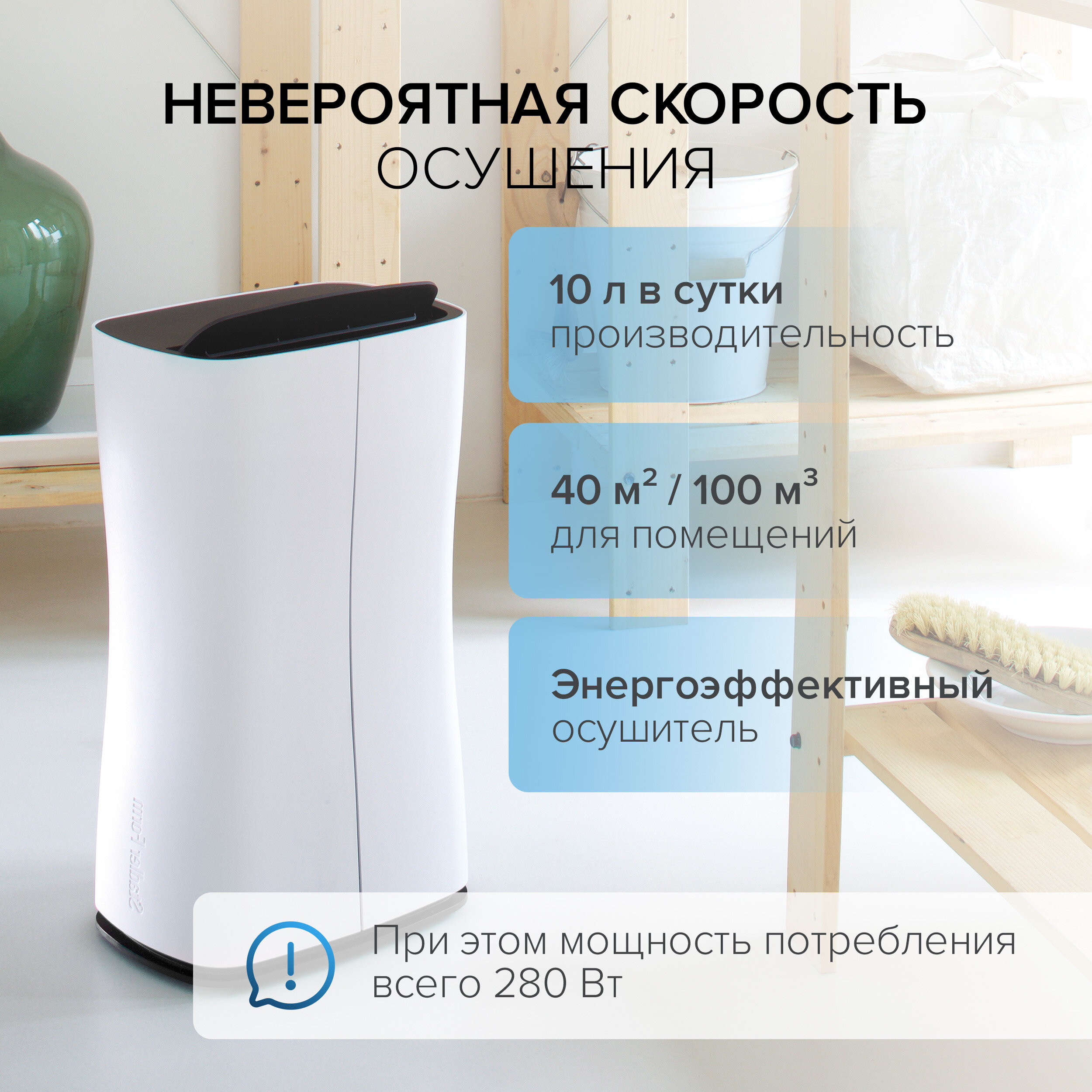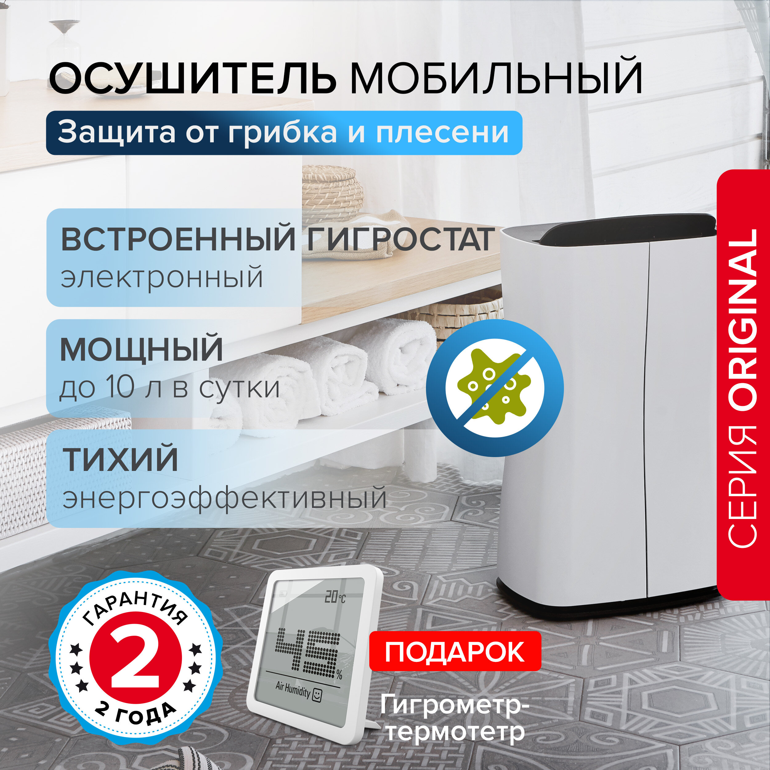 Простая элегантность в сочетании с высочайшей производительностью делают компактный осушитель воздуха Theo Original уникальным. Theo Original — незаменимый помощник в переувлажненных комнатах, который эффективно удалит излишнюю влагу из воздуха. Встроенный гигростат установит желаемую влажность на уровне 40%, 50% или 60%. Кроме того, Theo Original может работать беспрерывно. Его независимость впечатляет: таймер может быть запрограммирован с рабочим периодом от 1 до 7 часов. Когда период времени заканчивается либо резервуар для воды наполнен, Theo Original автоматически отключается. Если осушитель воздуха Theo Original остается дома один дольше запланированного, то дренаж облегчается благодаря шлангу, идущему в комплекте. Прибор из лимитированной серии Original: в расширенную комплектацию входит гигрометр Selina little, а гарантия от производителя увеличена до двух лет!