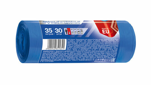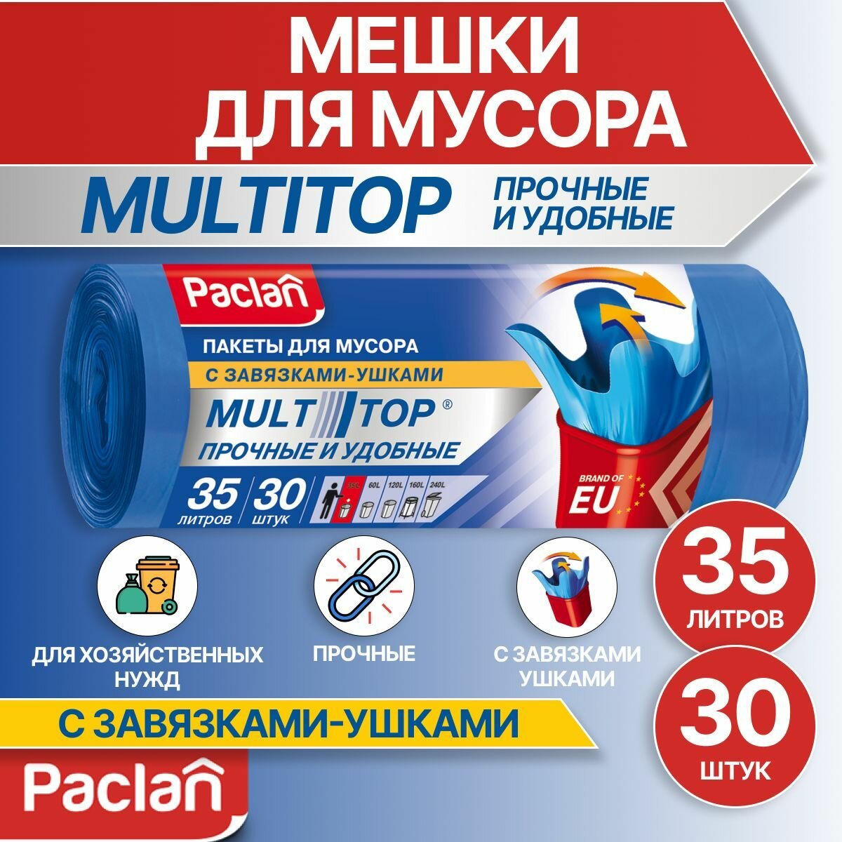 Пакеты мусорные Paclan Multi-Top 35л 15мкм синий в рулоне (упак.:30шт) (402080) 32 шт./кор.