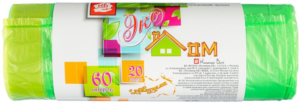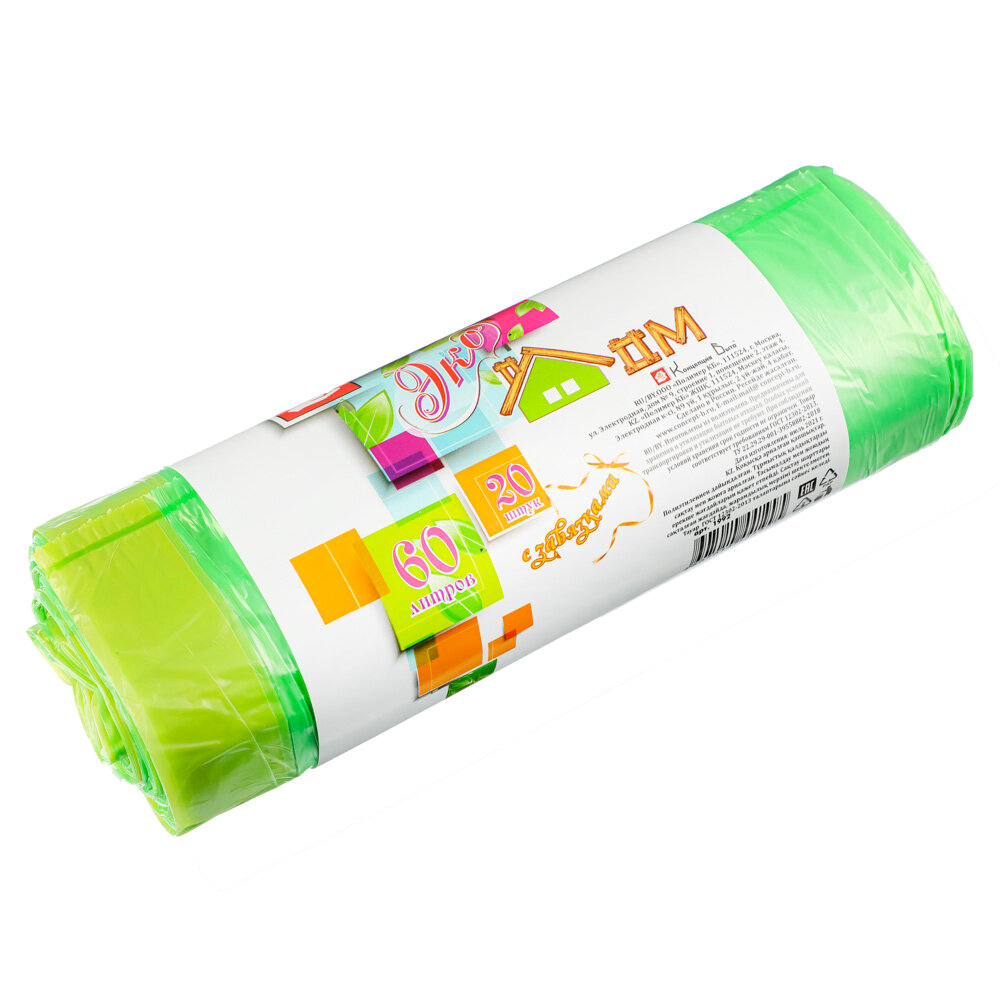 Пакеты мусорные Концепция быта ЭкоДом 60л 13мкм зеленый в рулоне (упак.:20шт) (1992) 20 шт./кор.