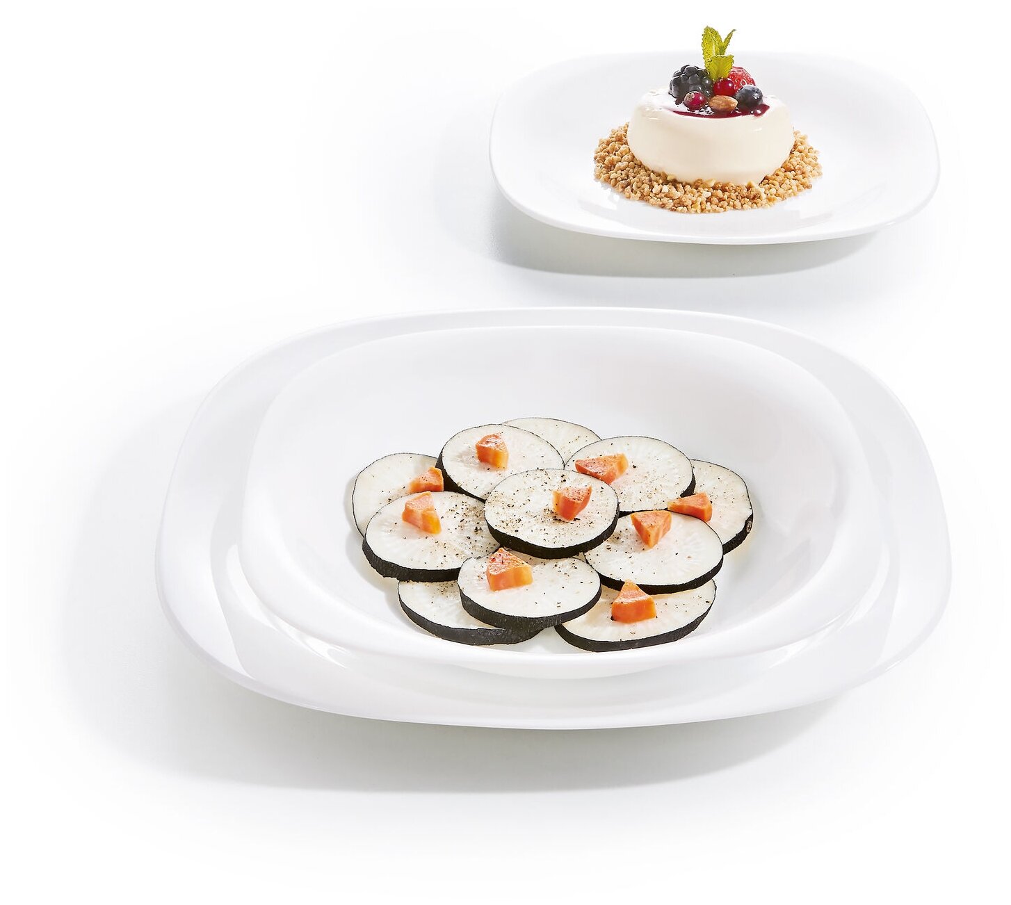 Изящный дизайн изделий придутся по вкусу и ценителям классики, и тем, кто предпочитает утонченность и изысканность в дизайне. Набор Luminarc Carine состоит из 19 предметов: тарелка обеденная 26 см - 6 шт / тарелка десертная 19 см - 6 шт / тарелка суповая 21 см - 6 шт / салатник 27 см - 1 шт.