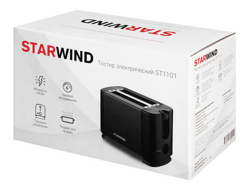 Тостер Starwind черный/черный, мощность 700Вт, количество отделений: 2, длина сетевого шнура 0.8м