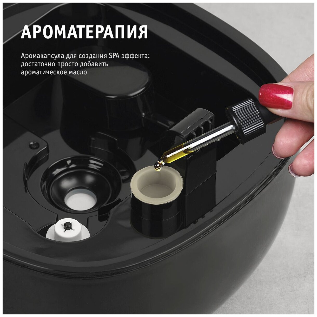 Увлажнитель Scarlett черный имеет емкость резервуара 3.8 литра, что обеспечивает продолжительную работу без необходимости частого долива воды. Благодаря ароматизации вы можете добавить любимый аромат или эфирные масла, которые помогут создать приятную атмосферу и расслабление. Этот воздухоувлажнитель также питается от сети, поэтому вы всегда можете быть уверены в его надежной работе.