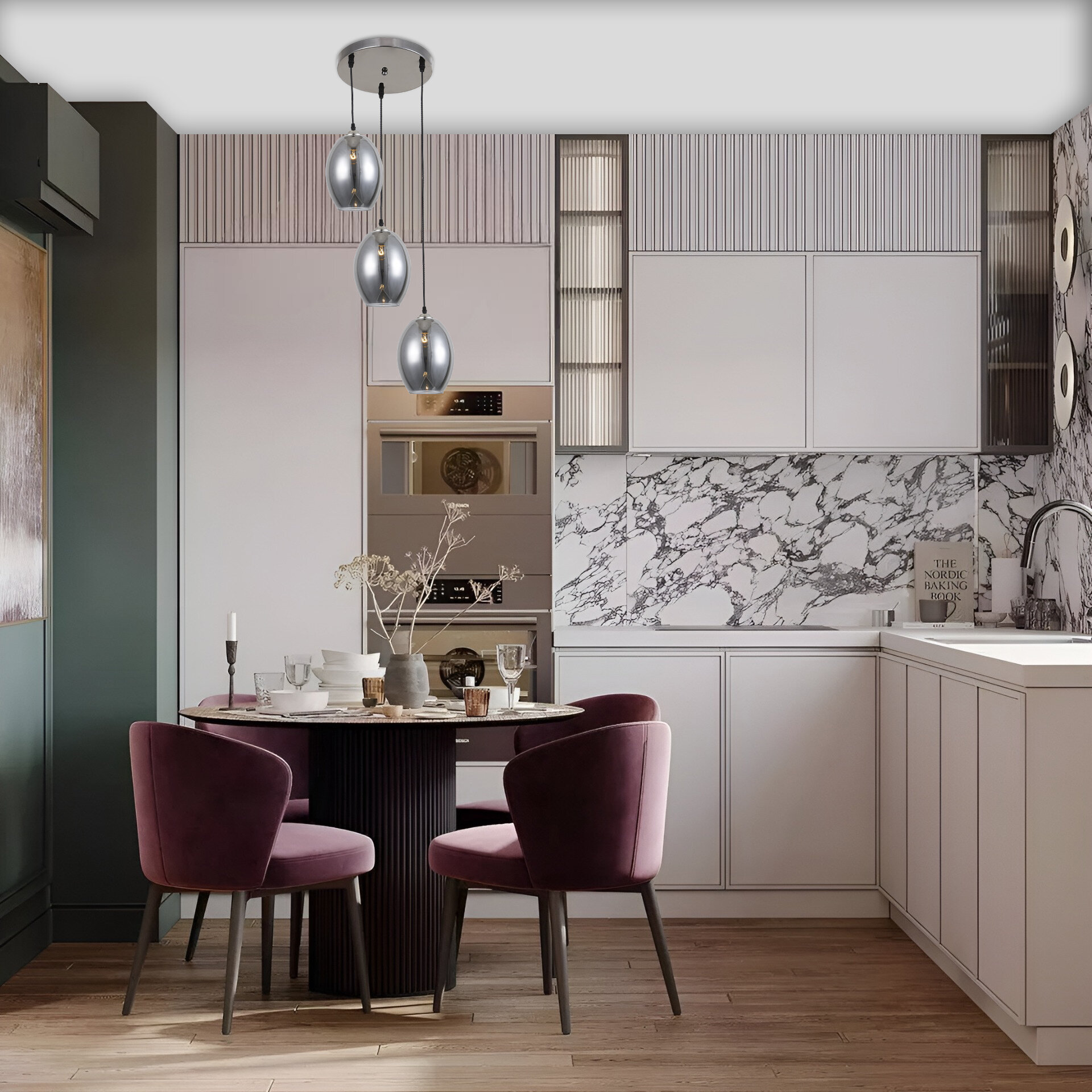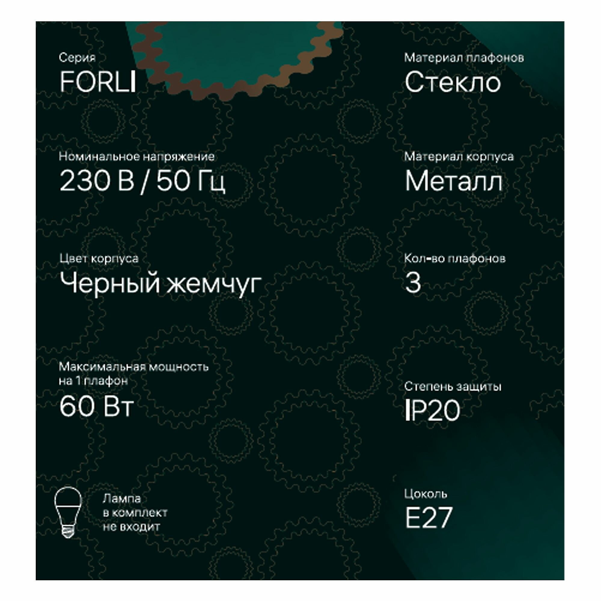 Потолочная подвесная люстра FORLI Ritter предназначена для освещения кухонь, гостиных, кафе и т.д. Подходит для акцентного освещения интерьеров в стиле лофт, винтаж. Люстра имеет три полупрозрачных плафона в цвете чёрный жемчуг с цоколем Е27. Максимальная мощность устанавливаемой лампы - 60 Вт.