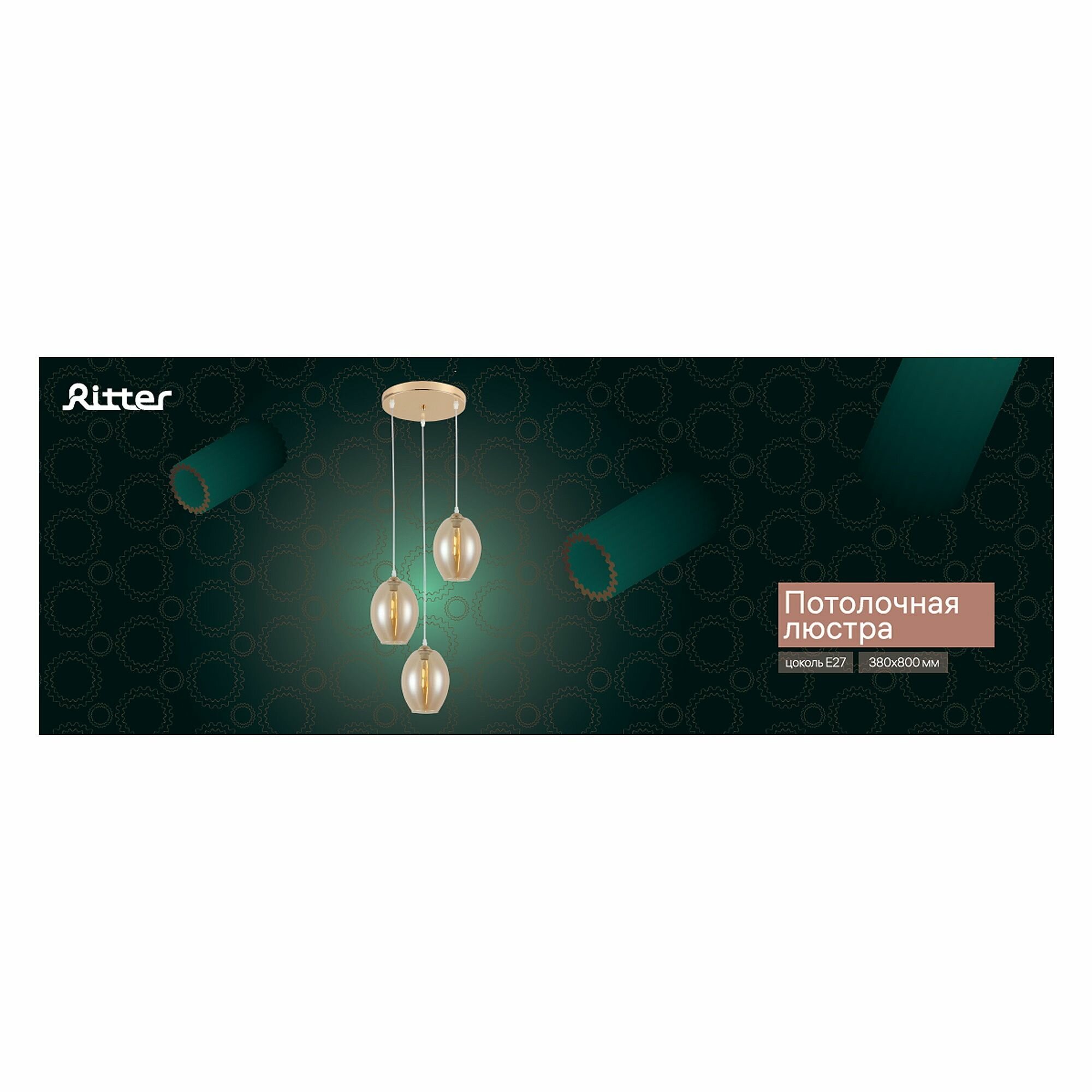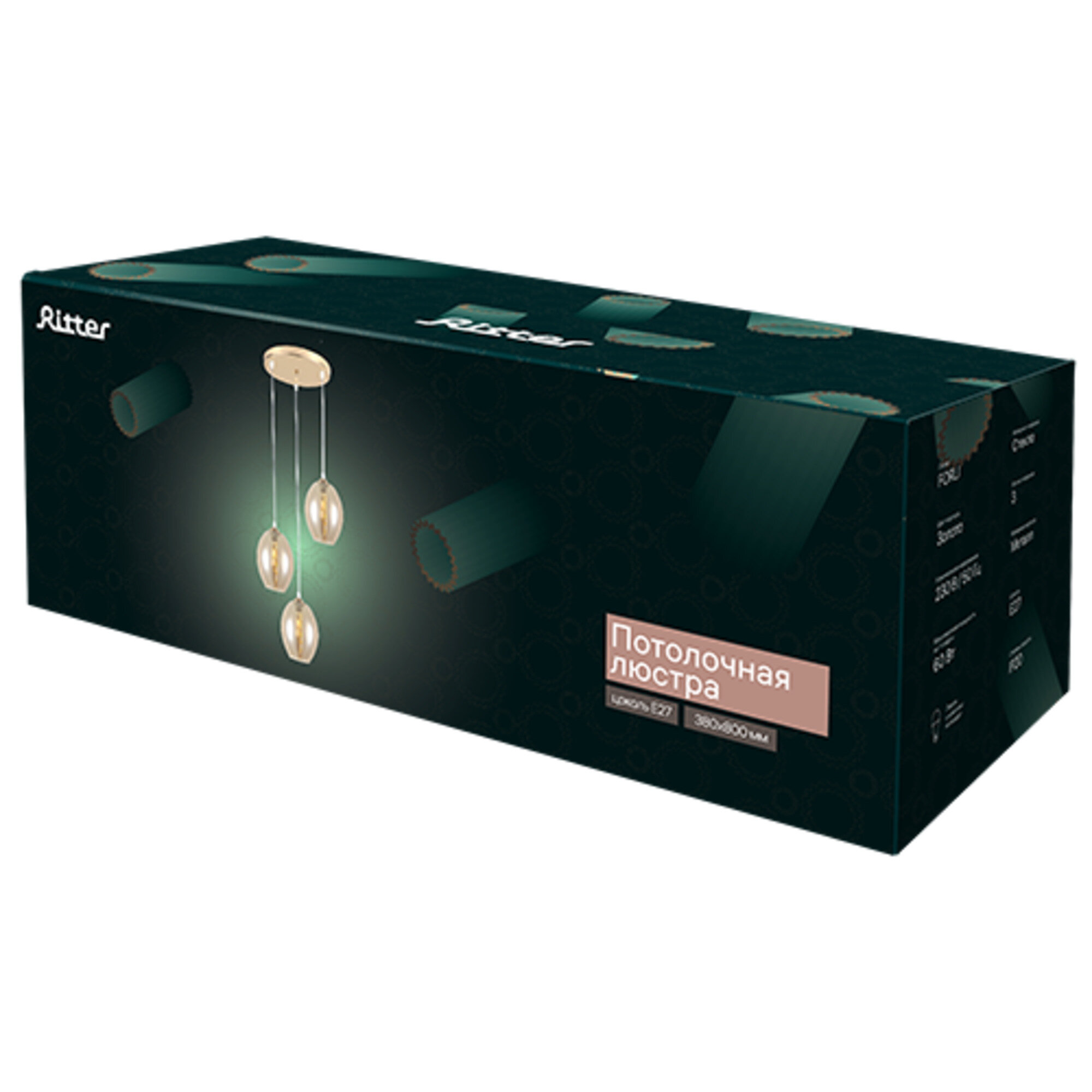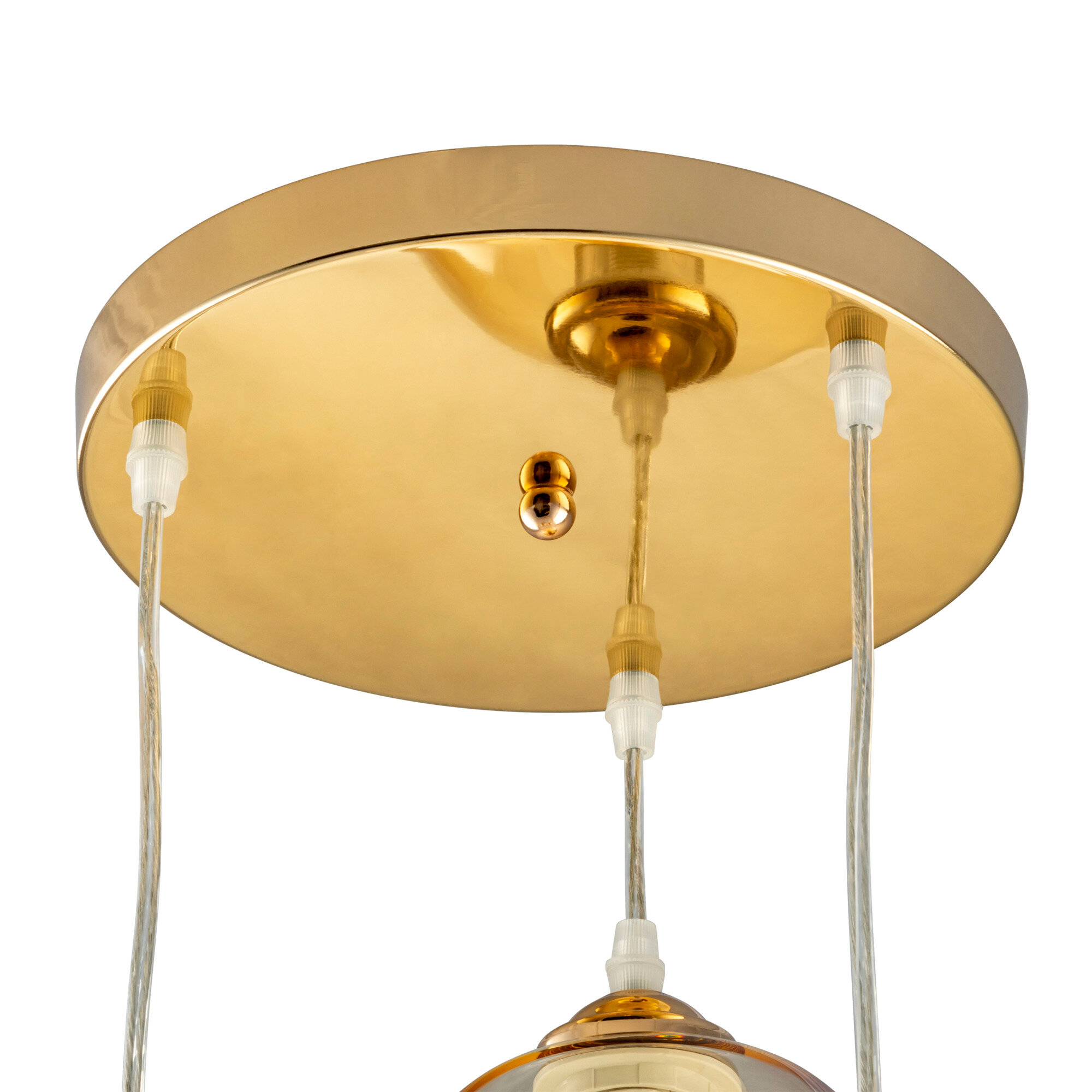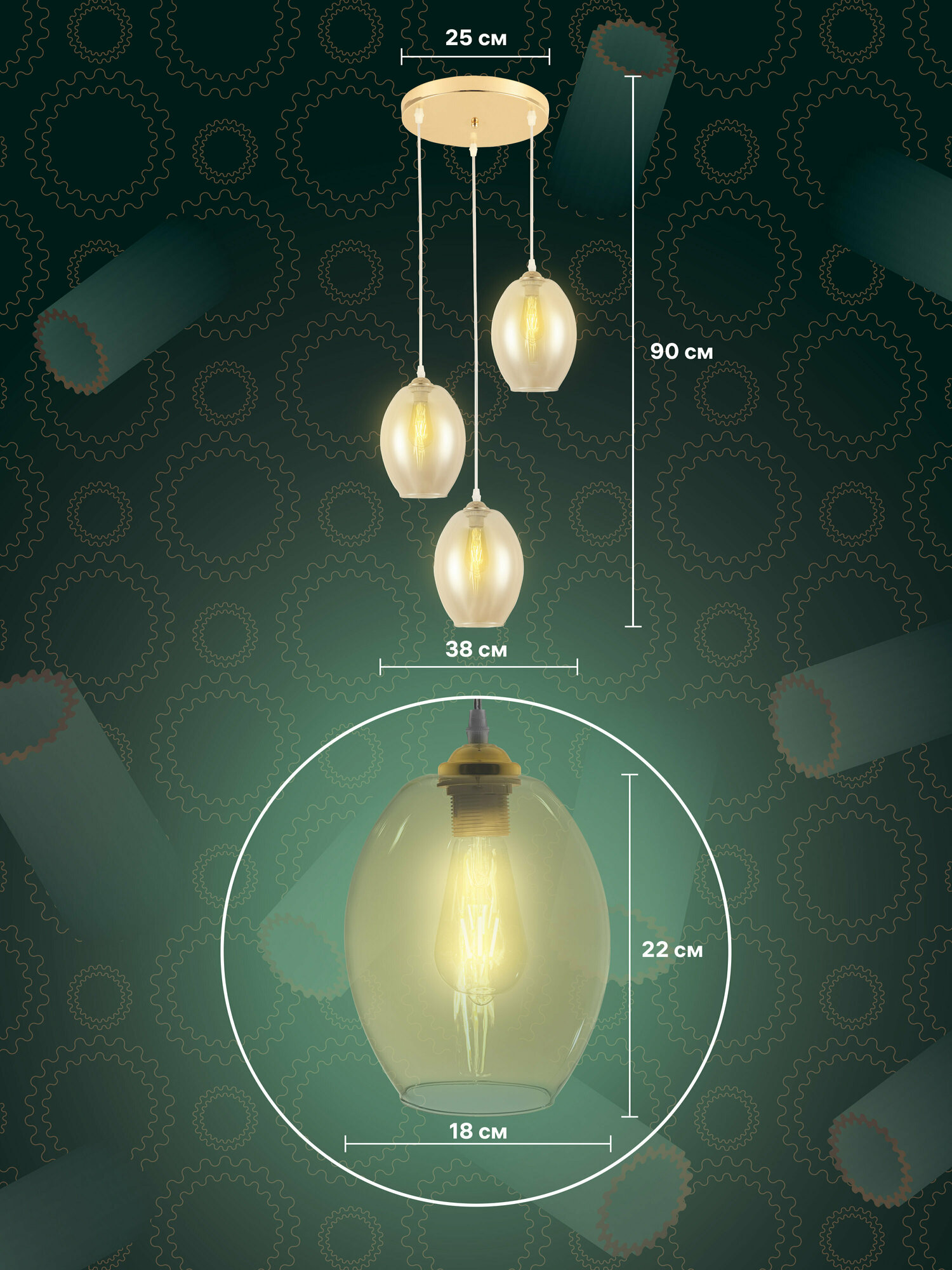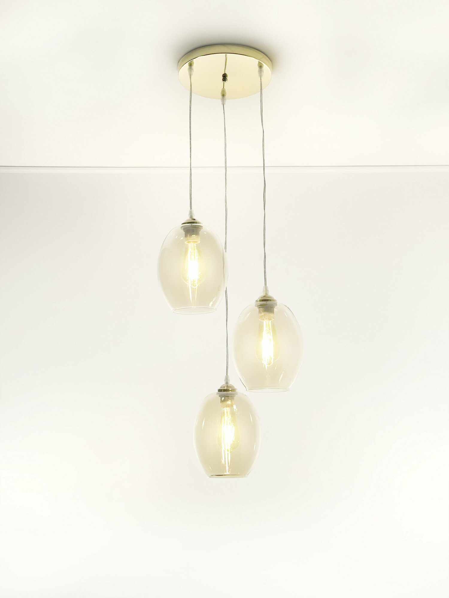 Потолочная подвесная люстра FORLI Ritter предназначена для освещения кухонь, гостиных, кафе и т.д. Подходит для акцентного освещения интерьеров в стиле лофт, винтаж. Люстра имеет три золотистых полупрозрачных плафона с цоколем Е27. Максимальная мощность устанавливаемой лампы - 60 Вт.