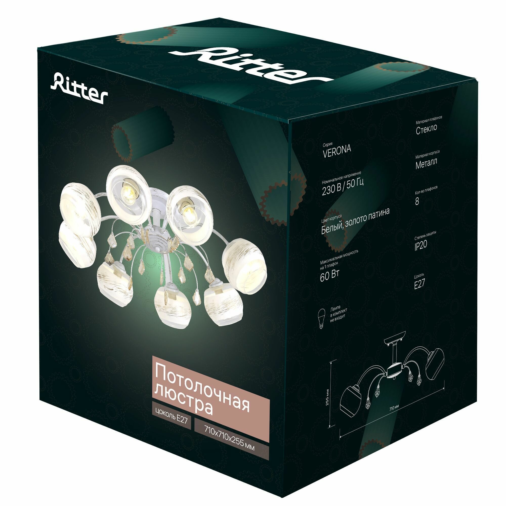 | Коллекция для публикации | Люстра VERONA 178/8 8хE27, 710х710х255мм, хром, Ritter |