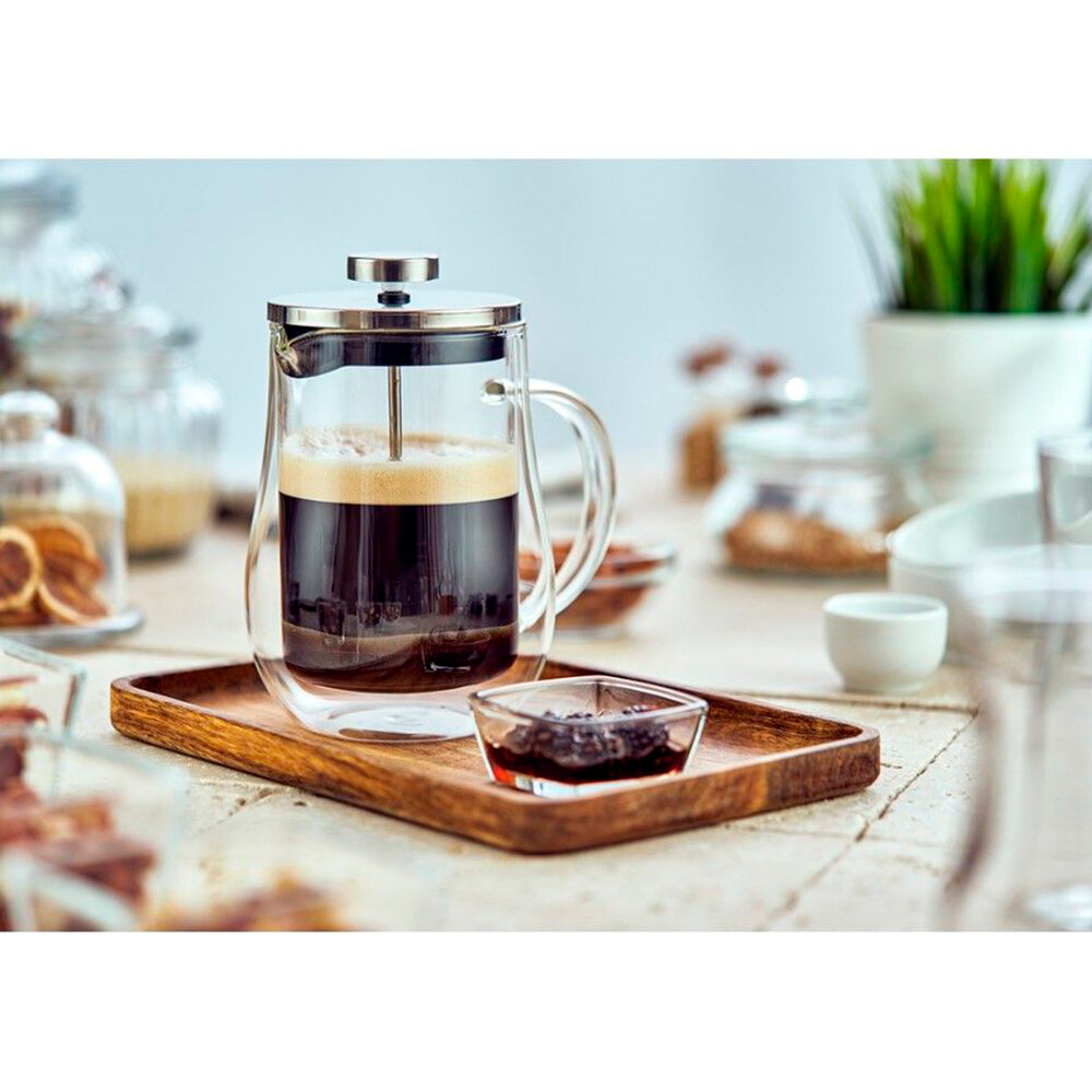 Функционально это современная модель, конкурентоспособная на широком рынке. Выполненный из термостойкого боросиликатного стекла, он выдерживает температуру от -20ºC до+280ºC. Пресс-фильтр – из нержавеющей стали марки 18/10, снабжен уплотнительным кольцом, сохраняет аромат и температуру напитка.