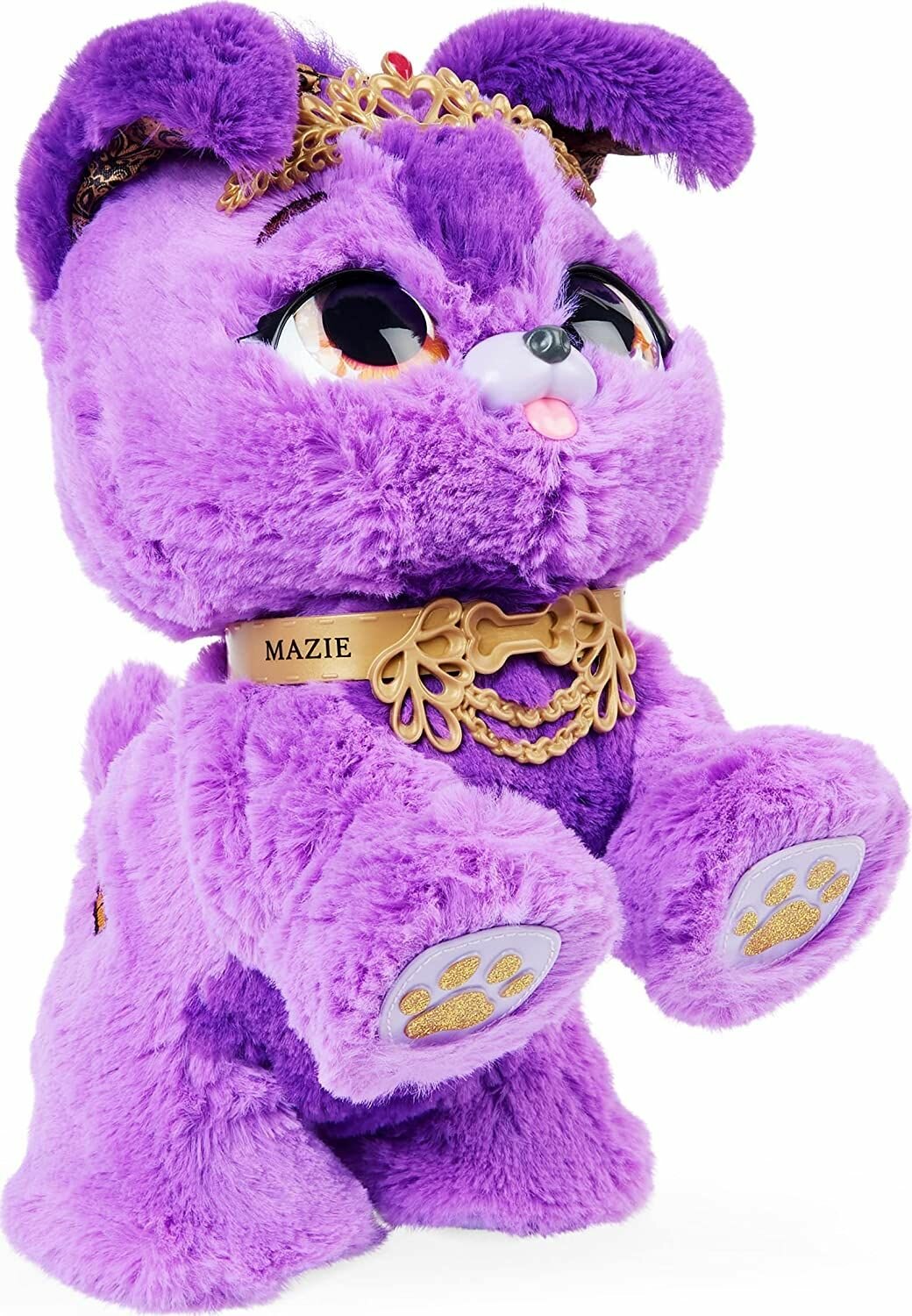 Интерактивный щенок Йорк в образе принцессы, который самостоятельно выбирается из коробки, как только вы потянете за подарочную бирку. У щенка блестящая тиара и ошейник, золотые элементы на лапах и ушах, мягкий плюшевый мех. Щенок умеет петь приветственную песню, любит обниматься, целуется, если его погладить по голове, играет, если пощекотать его живот, виляет хвостиком, перебирает лапками и лает. Умеет выполнять трюки – для этого нужно одновременно нажать на кнопку на спине и погладить по голове. Издает более 100 разных звуков.