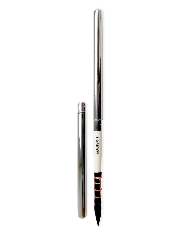 Микс натурального беличьего ворса и специальной мягкой синтетики позволяет получить управляемую долговечную кисть, которая держит много воды и краски, а складная конструкция удобна в поездках и на пленере.