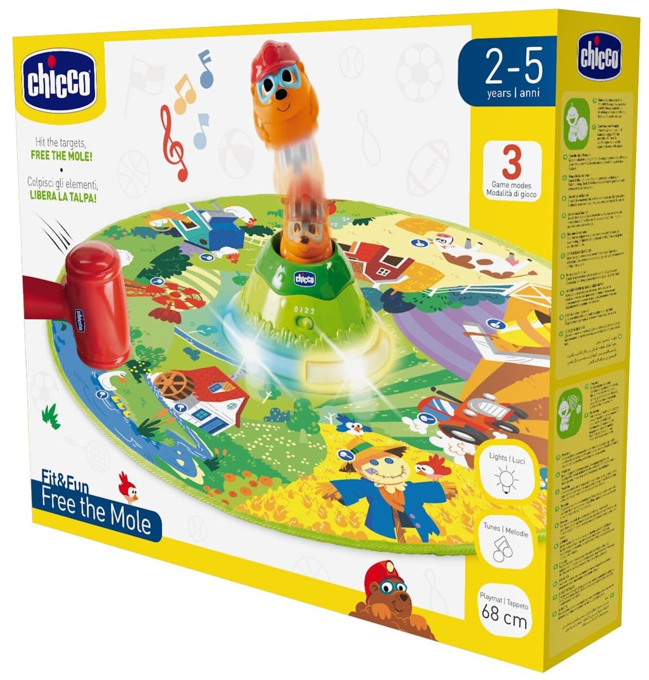 Развивающий игровой коврик Chicco Поймай крота с вау-эффектом: бей молоточком, рукой или ногой, чтобы крот выпрыгнул из своей норки.