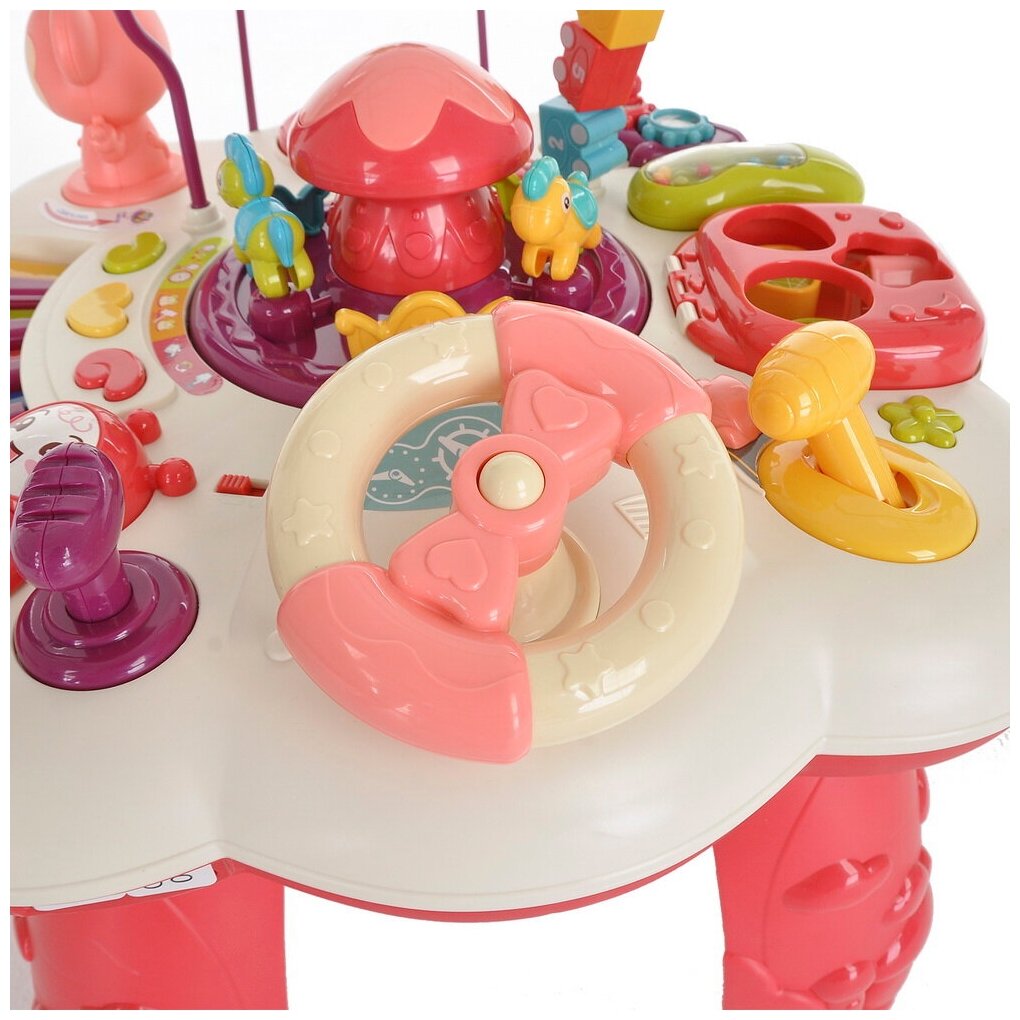 Pituso Развивающая игрушка Детский игровой развивающий - это музыкальная развивающая игрушка, которая привлечет к себе внимание малыша яркой столешницей, а множество различных интересных элементов позволят столику надолго остаться любимой игрушкой ребенка. Проводя время за этим игровым центром, ребенок будет обучаться через игровые элементы. Благодаря мелким деталям, малыш разовьет мелкую моторику и тактильное восприятие. Столик познакомит Вашего ребенка с числами, цветами, животными, забавными фразами, песнями, звуковыми эффектами и многим другим. Также есть имитация телефона для ролевых игр и творческих забав. Вращайте руль, играйте с обезьяной и включайте карусель. Нажимайте кнопки, чтобы воспроизводить музыку и звуки, нажимайте или потяните рычаг переключения передач, чтобы изучать противоположности, нажимайте короткие музыкальные кнопки, чтобы изучать цвета и ноты, и используйте воображаемый телефон, чтобы звонить своим друзьям. Размер толика: 47 х 47 х 45.5 см Изготовлено из пластмассы Предназначено для детей 18м+ Для работы необходимы три батарейки типа АА. (в комплект не входят).