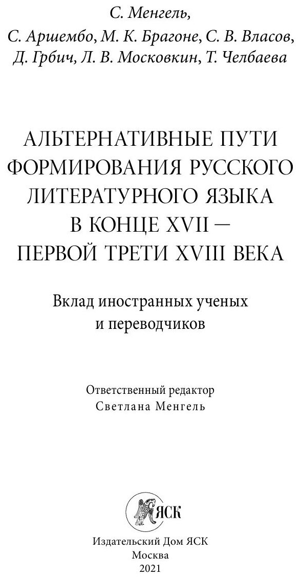 Альтернативные пути формирования русского литературного языка в конце XVII первой трети XVIII века (Брагоне Мария Кристина, Менгель Светлана, Аршембо Сильви); Языки славянских культур, 2021