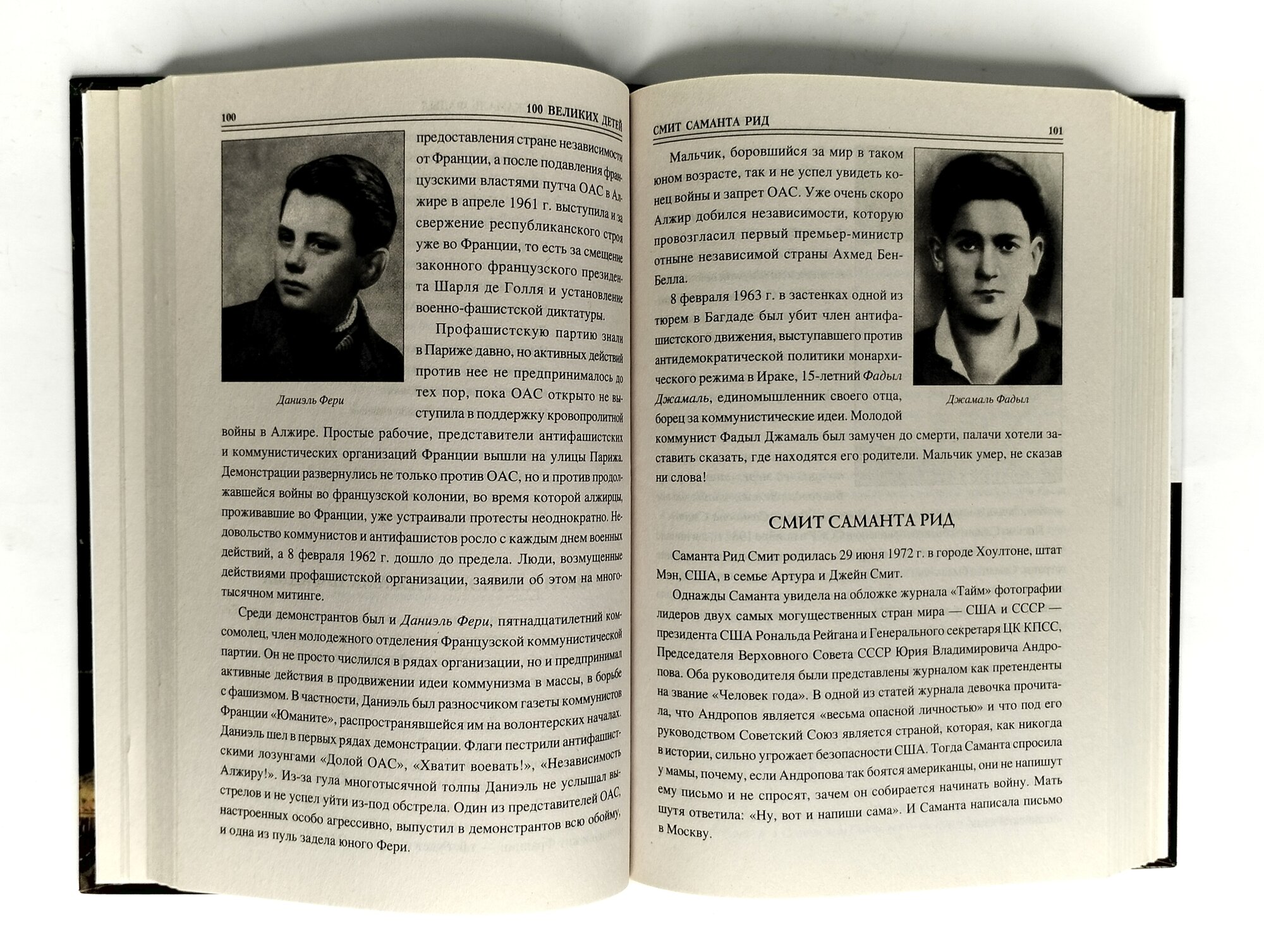 Каждый человек в начале жизни проживает чудесный, неповторимый период - детство. Многие считают, что детство - исключительно подготовка к взрослой жизни и только в зрелые годы человек полностью реализует свой личностный потенциал, оказывается способным на значимые деяния и поступки, а то даже и на героические свершения. Однако в реальной жизни нередко именно дети показывают пример самоотверженности и героизма, совершают подвиги, делают открытия, пишут гениальные произведения, вызывают восторг у любителей кино и спортивных фанатов. История знает немало примеров, как именно в детском возрасте те или иные люди совершали свои главные жизненные поступки. Очередная книга серии "100 великих" рассказывает именно о таких великих детях и о том, почему их имена никогда не забудут люди.
