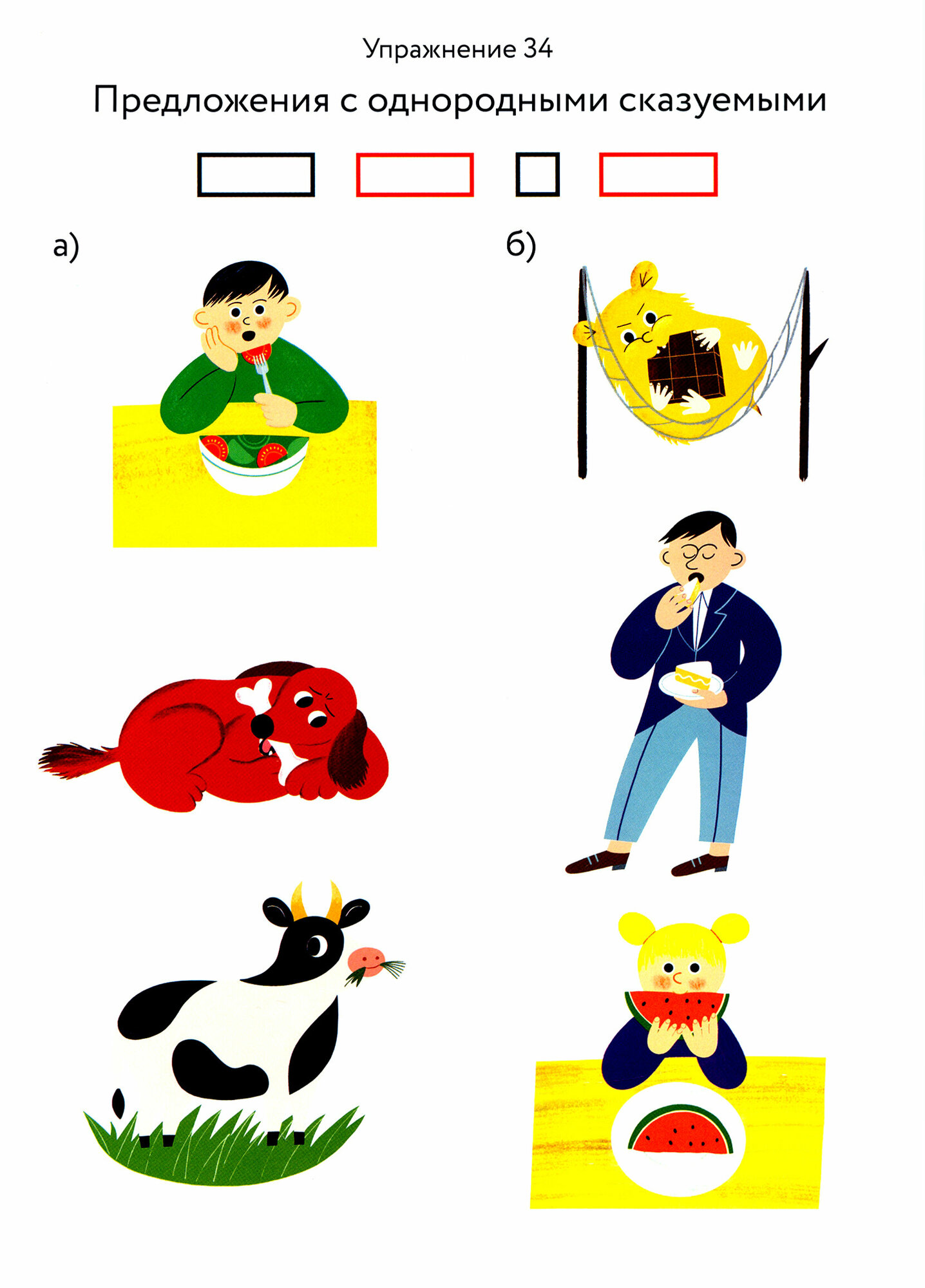 Задания снабжены схемами предложений, глагольными и слоговыми символами. Предметные карточки написаны для возможности чтения ребенком. На каждом листе указан номер соответствующего упражнения книги.
