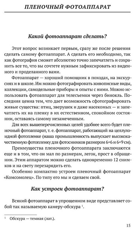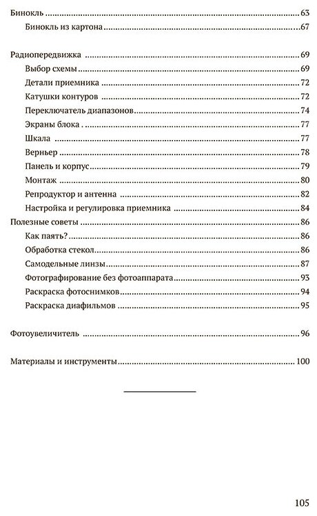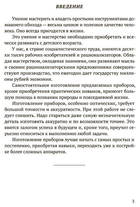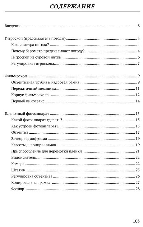 Умение своими руками создавать простые инструменты и приборы, которые пригодятся в быту, — важное качество для всех детей, и развивать его надо как можно раньше. В этом вам и поможет эта книга. Изучив ее, ваш ребенок узнает, как с помощью лишней автомобильной фары увидеть Луну или определить погоду, используя обычную толстую нить. Из подручных материалов он сможет собрать микроскоп или смастерить настоящий пленочный фотоаппарат и самостоятельно проявлять фотографии в домашних условиях. Издание представляет собой тематических сборник емких и доступных инструкций по тому, как и из чего делать разные предметы из области оптики или электроники. Для простоты каждая инструкция сопровождается понятными пошаговыми иллюстрациями и поясняющими комментариями. По книге ребенок сможет заниматься как вместе с родителями, так и самостоятельно.
