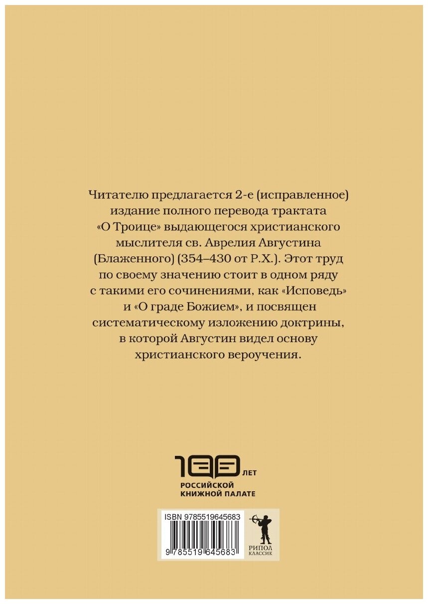 Читателю предлагается 2-е (исправленное) издание полного перевода трактата "О Троице" выдающегося христианского мыслителя св. Аврелия Августина (Блаженного) (354-430 от Р.Х.).