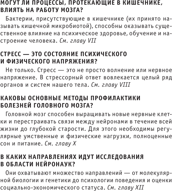 Я рекомендую данную книгу к прочтению. Книга очень интересная и полезная. Доступным языком, понятным для каждого человека автор рассказывает не только о работе головного мозга, но и о его связанной работе с другими системами организма; автор говорит и влиянии других систем организма на работу мозга. Меня больше всего впечатлили главы о влиянии гормонов и микрофлоры кишечника на работу мозга.
