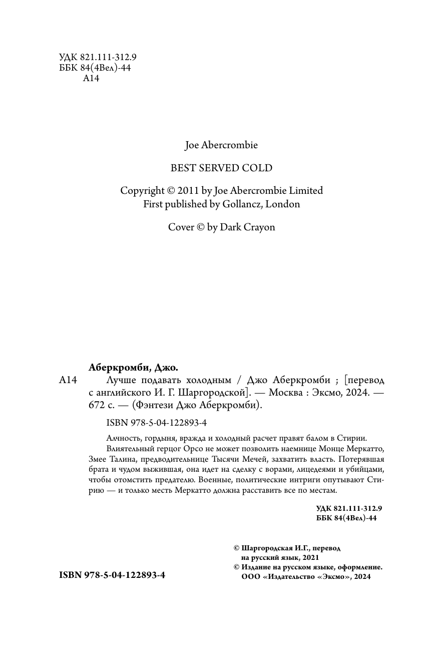 Книга: Лучше подавать холодным (Джо Аберкромби); Эксмо, Fanzon, Редакция 1, 2024