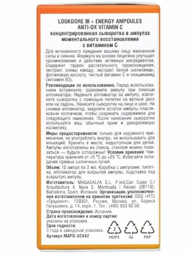 Cыворотка концентрированная в ампулах моментального восстановления с витамином С LookDore 2мл 10шт MAGASALFA S.L. (1563002)