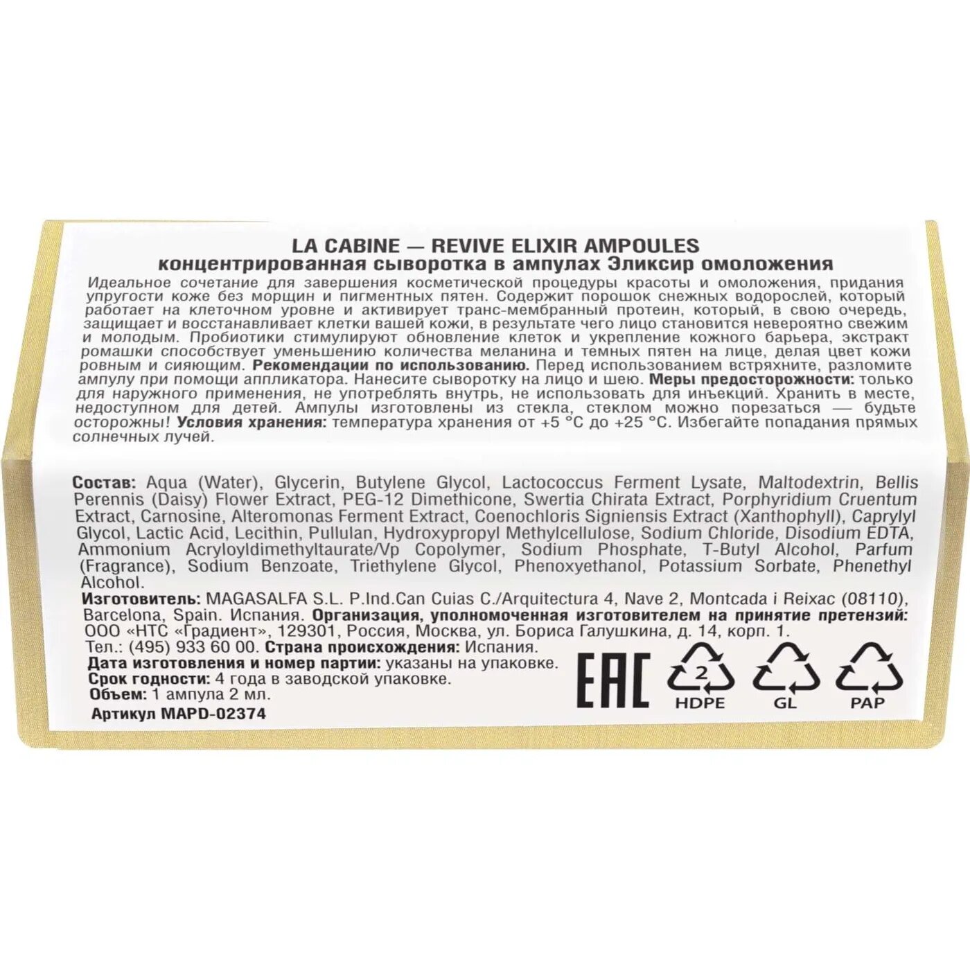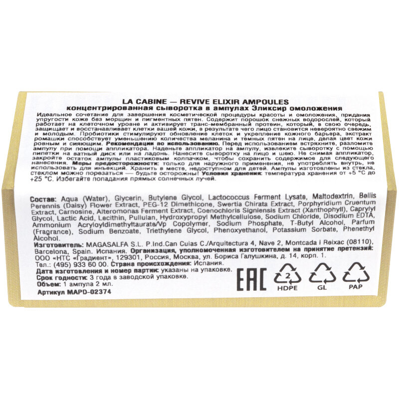 Cыворотка концентрированная в ампулах Эликсир омоложения Revive elixir La Cabine 2мл 10шт MAGASALFA S.L. (1563002)