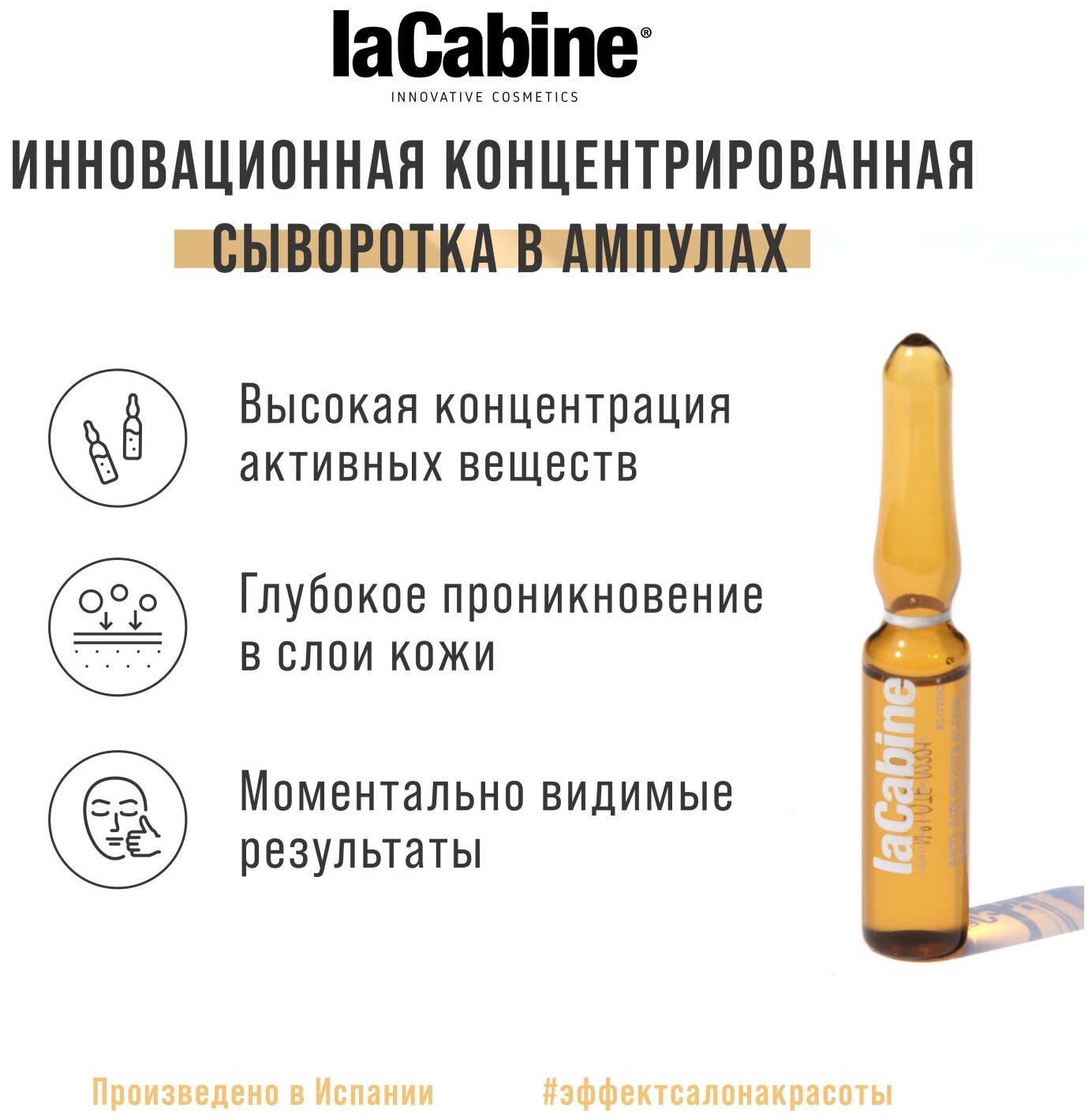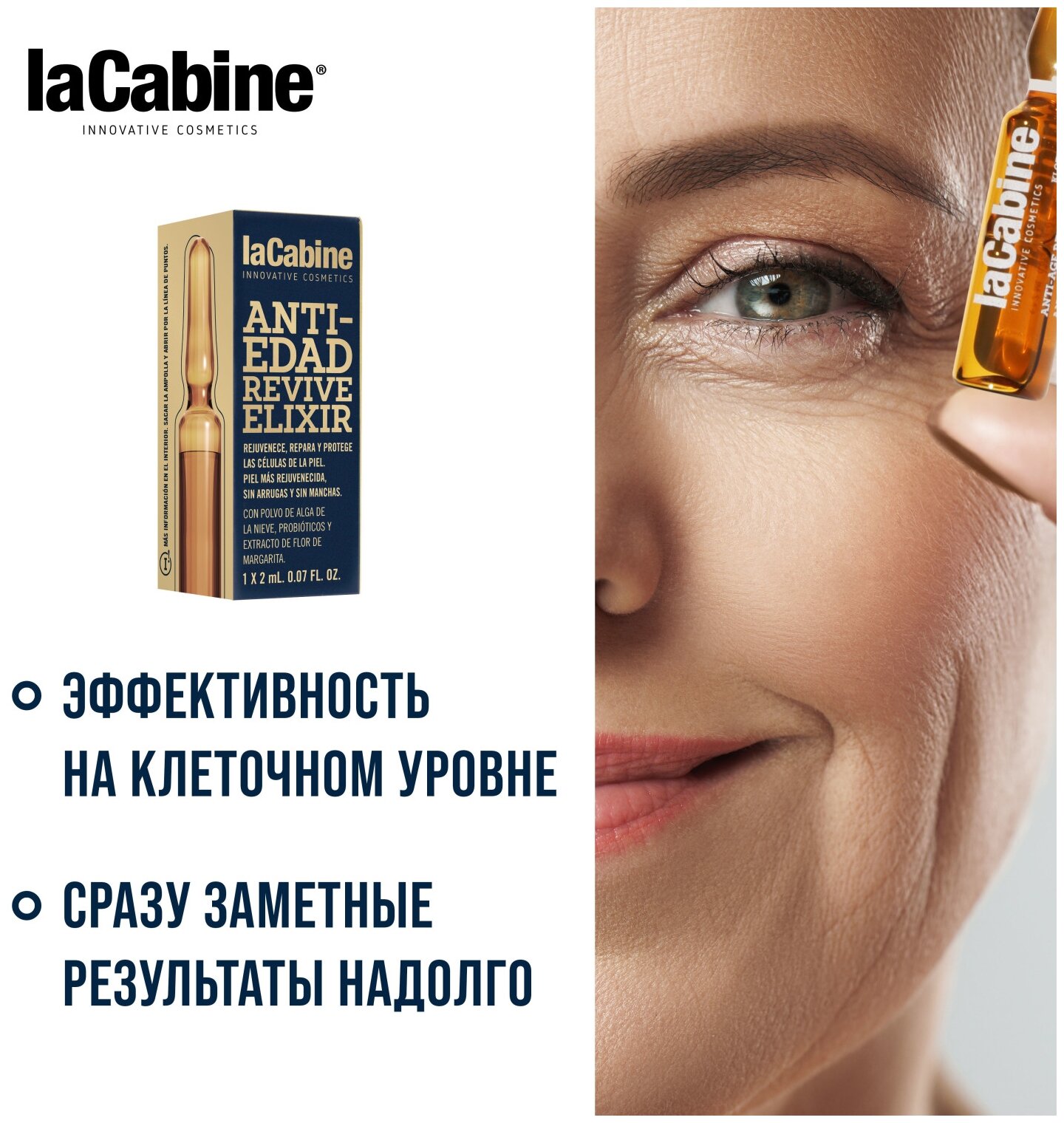 LaCabine REVIVE ELIXIR AMPOULS - идеально для завершения косметической процедуры красоты и омоложения, придания упругости коже без морщин и пигментных пятен.