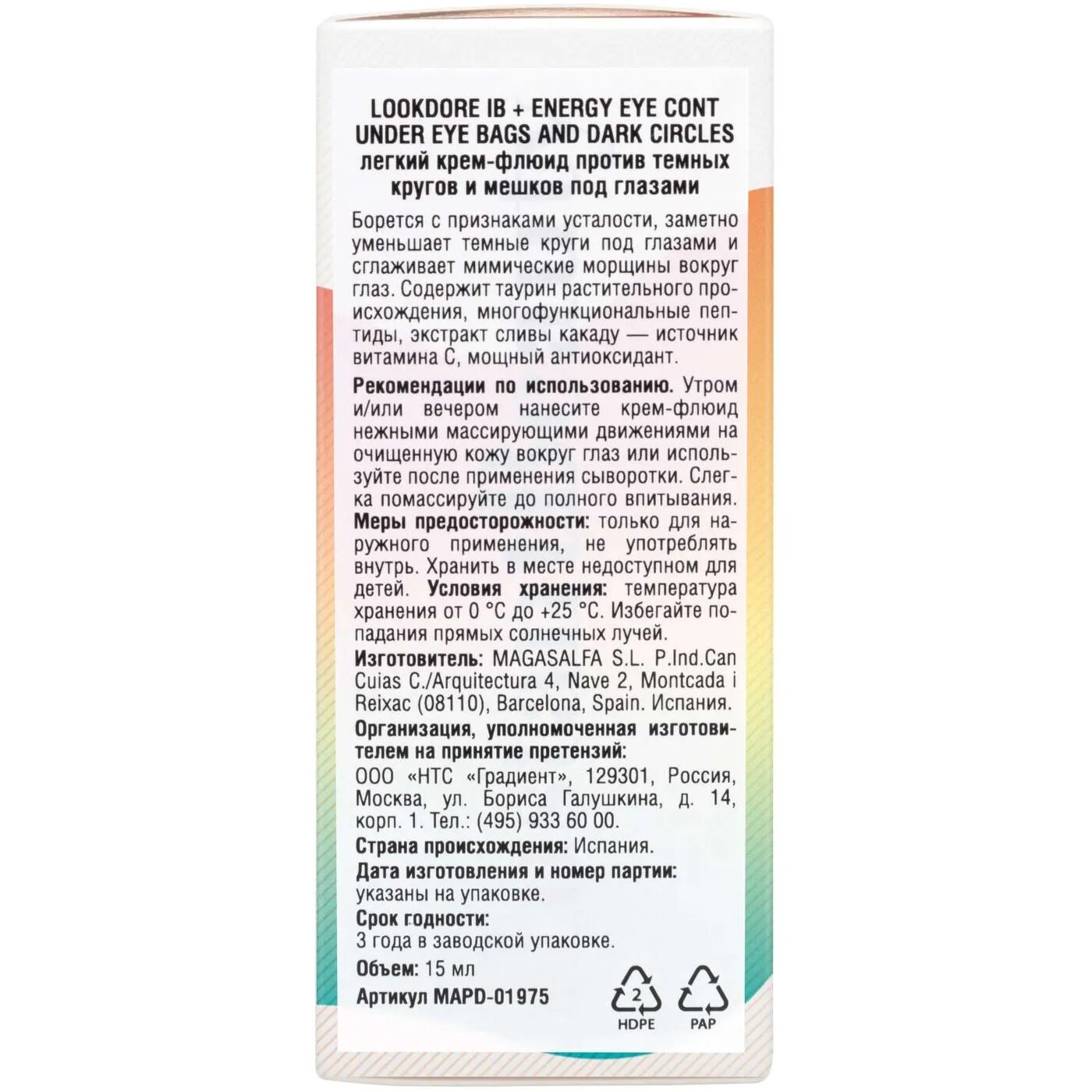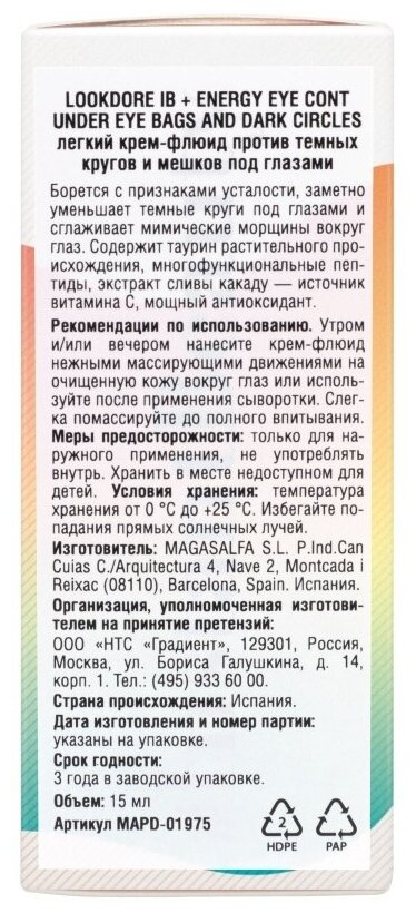 Крем-флюид легкий против темных кругов и мешков под глазами IB+Energy LookDore 15мл MAGASALFA S.L. (1563002)