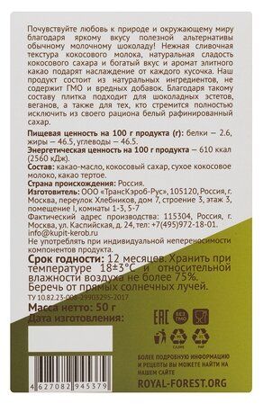 Сервис сравнения цен СкидкаГИД предлагает сравнить цены на товар «Шоколад Royal Forest Coconut Vegan Bar Кокосовое молоко 50г»