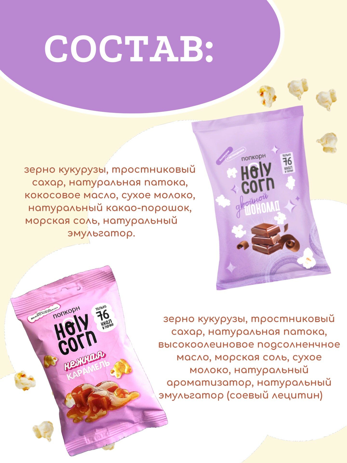 Попкорн для микроволновой печи Holy Corn "Морская соль" - это настоящее удовольствие для любителей горячего, свежего и хрустящего попкорна. Зерна кукурузы + чуть-чуть морской соли + микроволновка = идеальный план на вечер! Cкорее кладите упаковку в печь на 2-3 минуты, подождите 2-3 секунды между хлопками. Все, готово! Аккуратно доставайте пачку и наслаждайтесь воздушным как облачко попкорном. #холикорни каждый день!