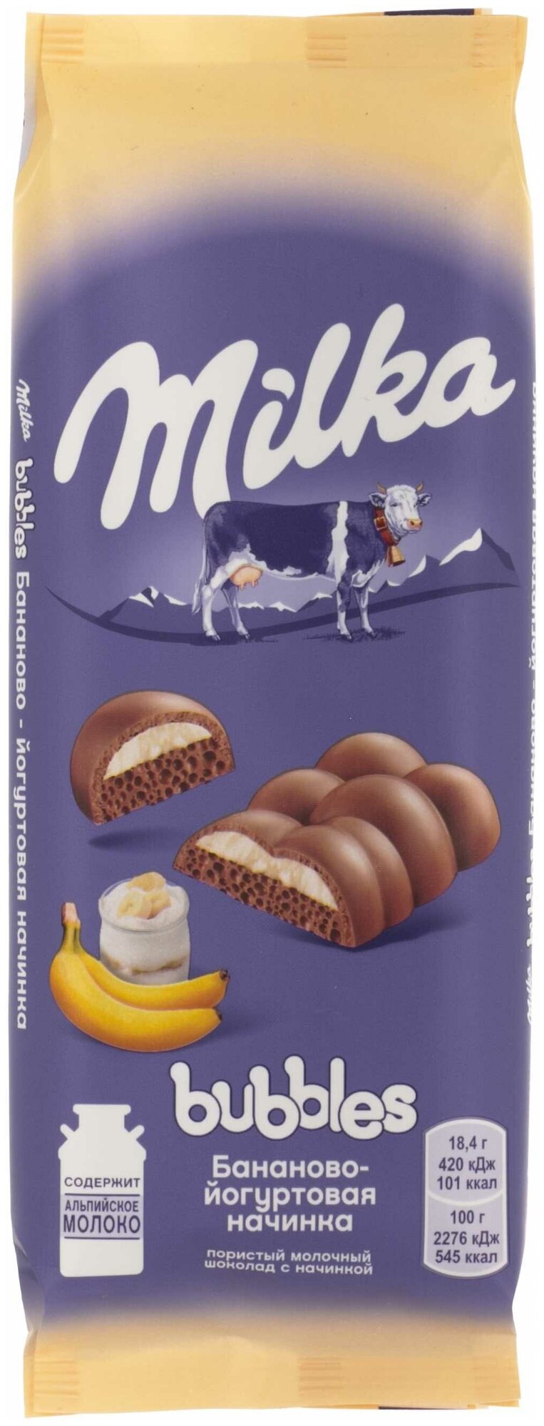 Шоколад Milka Bubbles Молочный пористый с бананово-йогуртовой начинкой 92г
